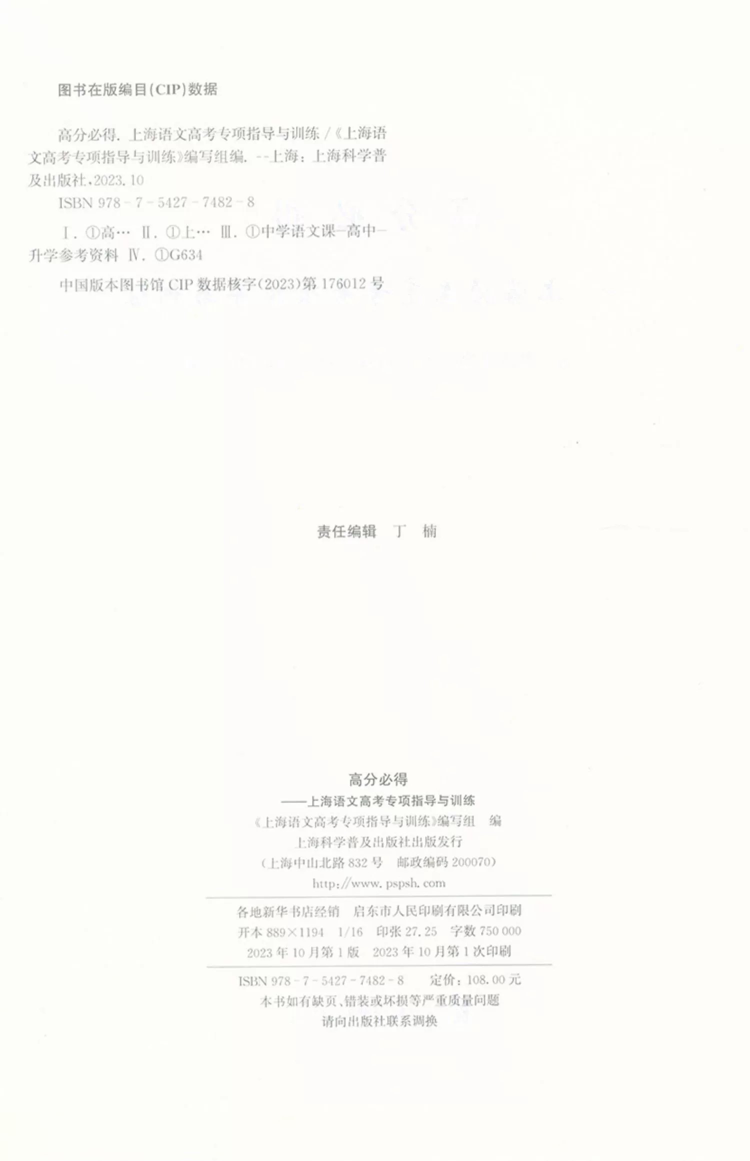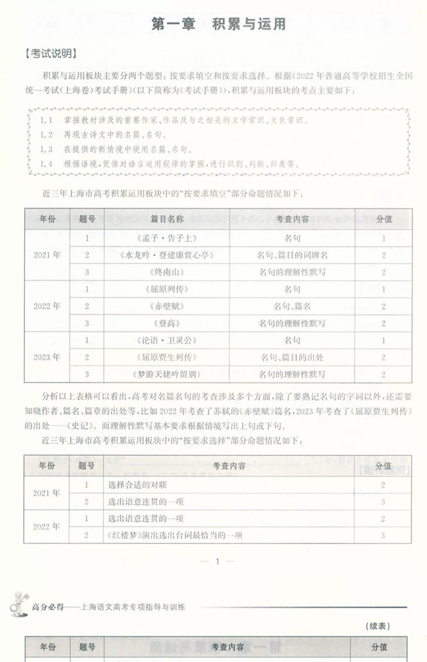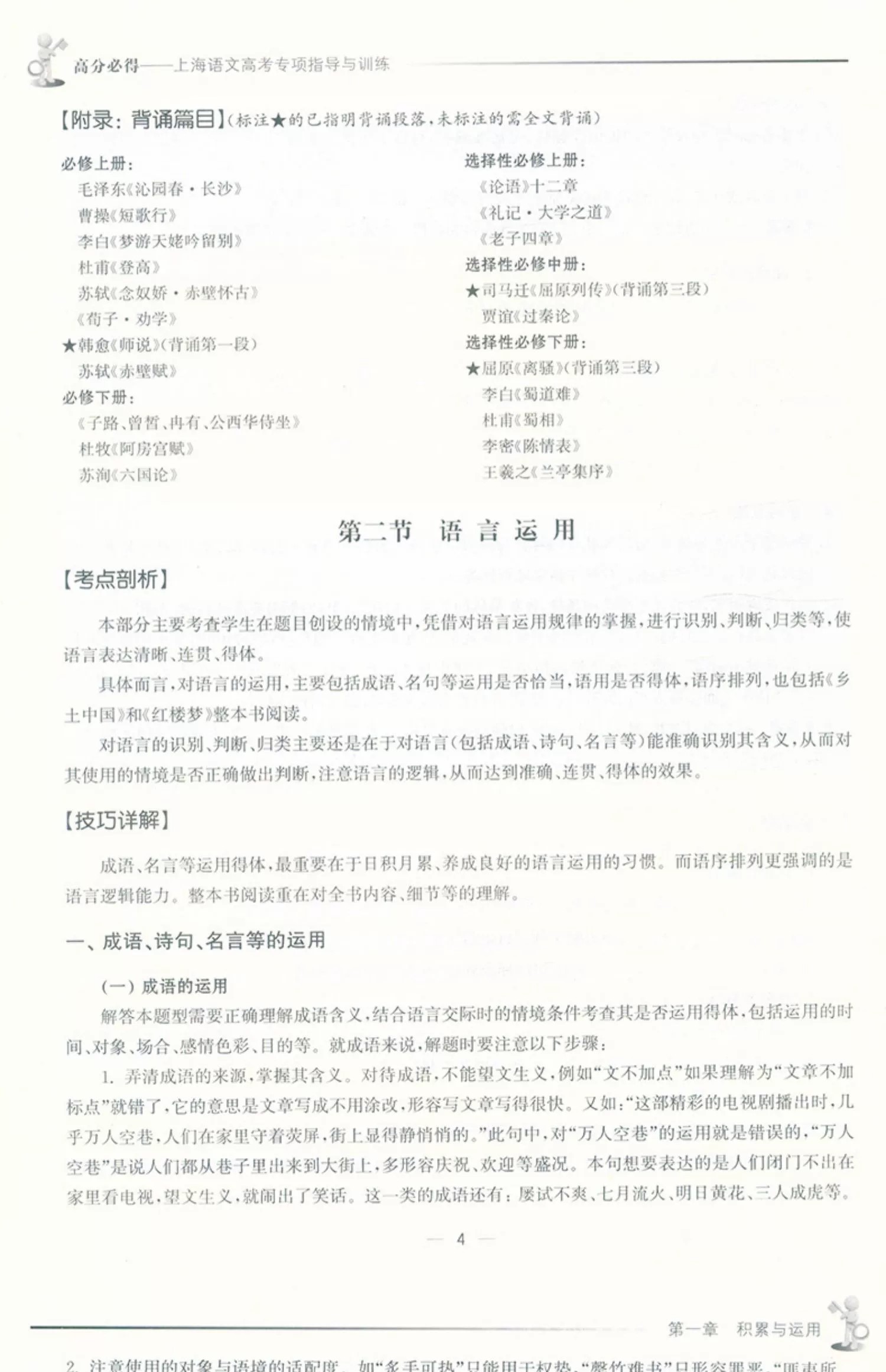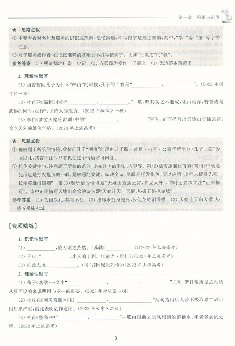 [上海高二高三适用】2024年高分必得 上海语文高考专项指导与训练 附电子答案