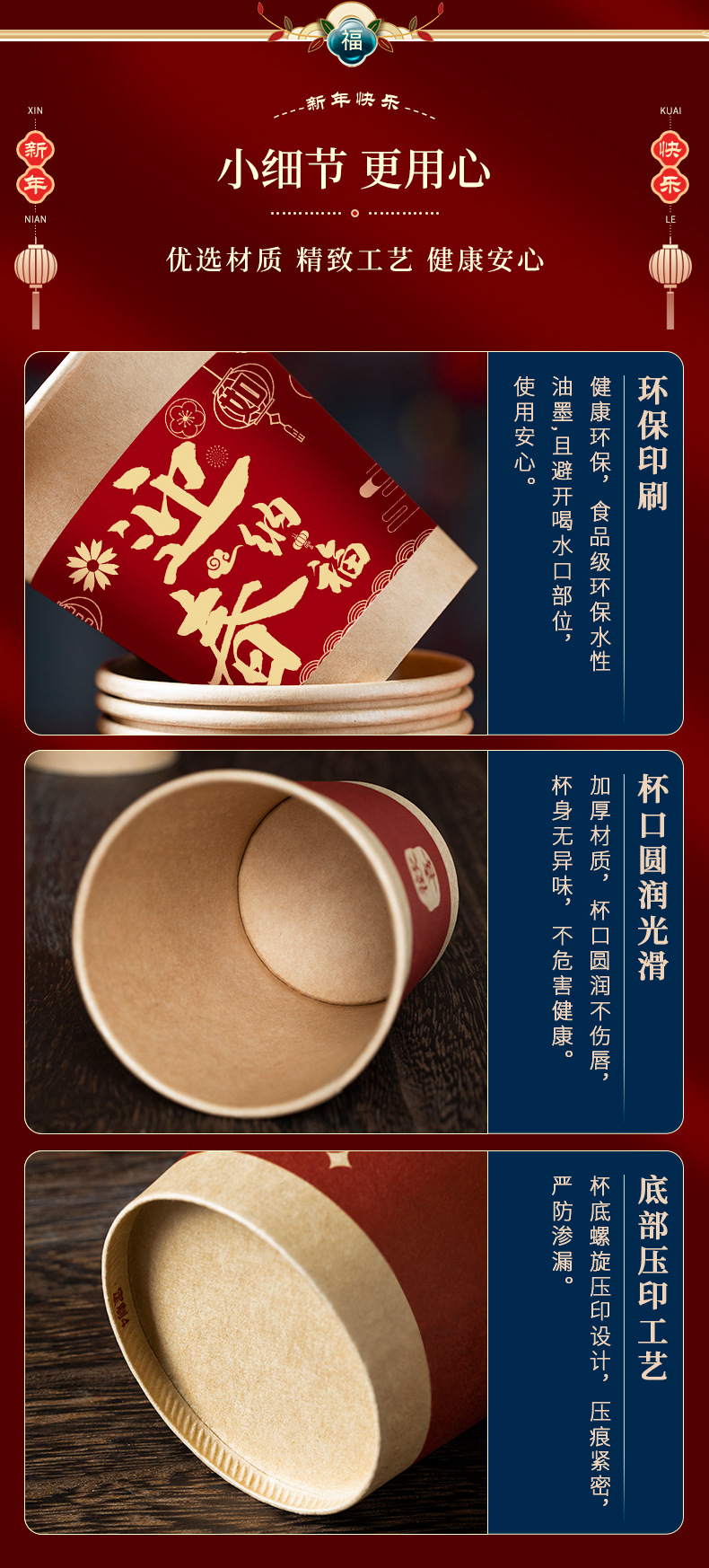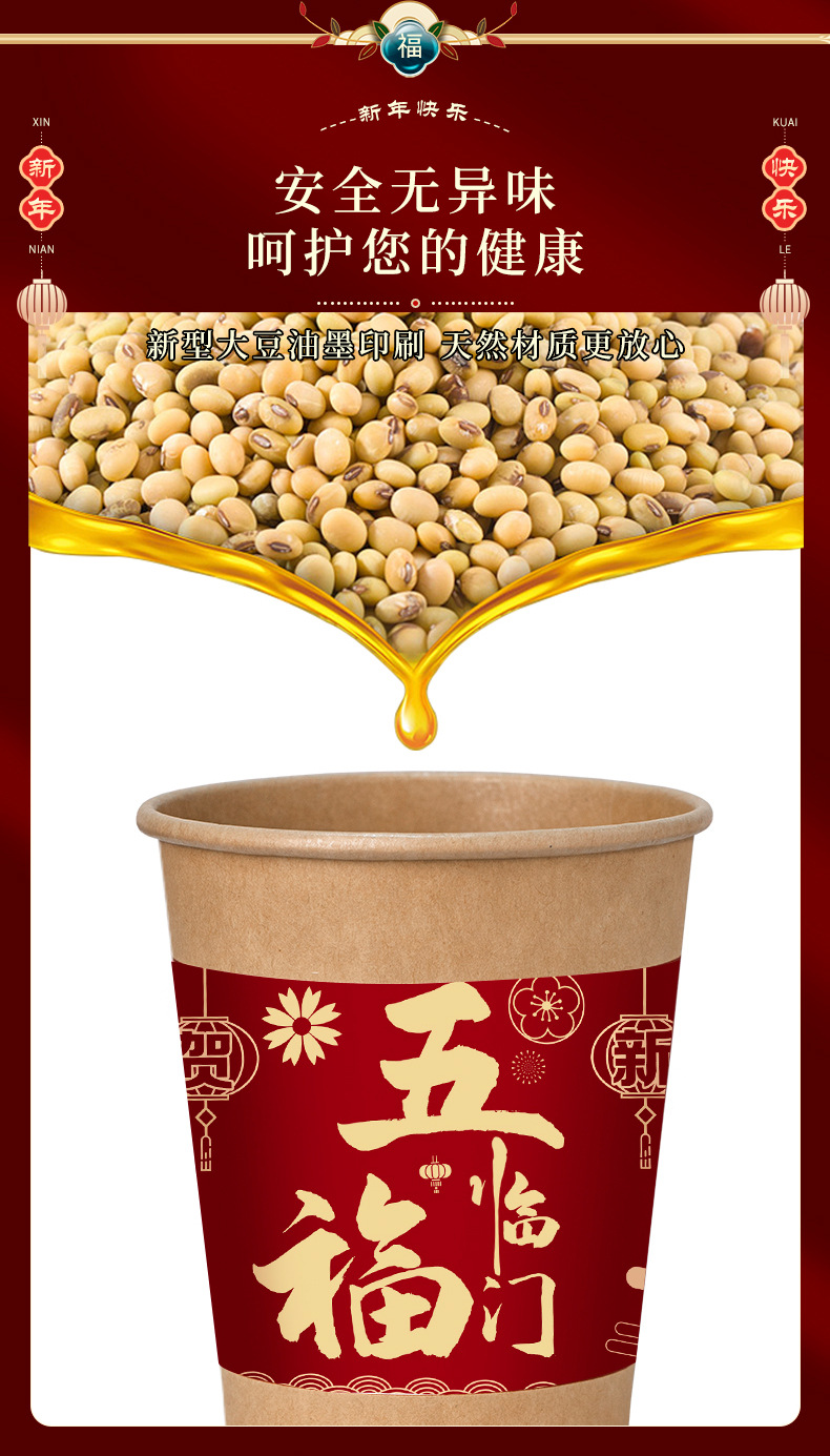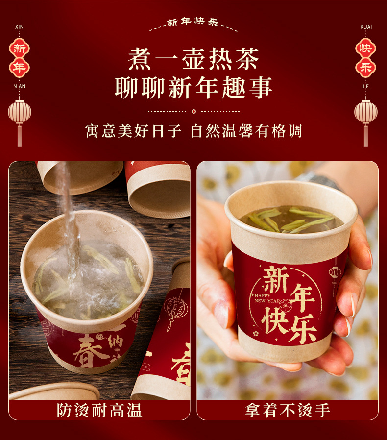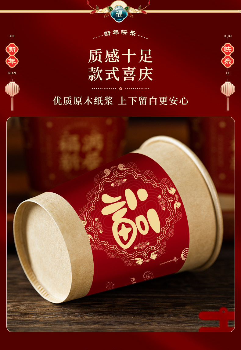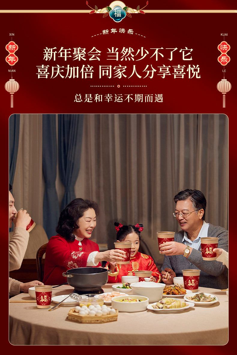 【新年聚会当然少不了它】新年一次性纸杯装饰过年家用加厚团聚用品大全春节福气送福杯子。ry
