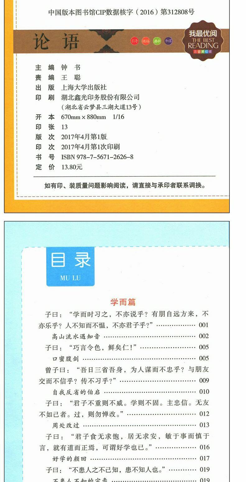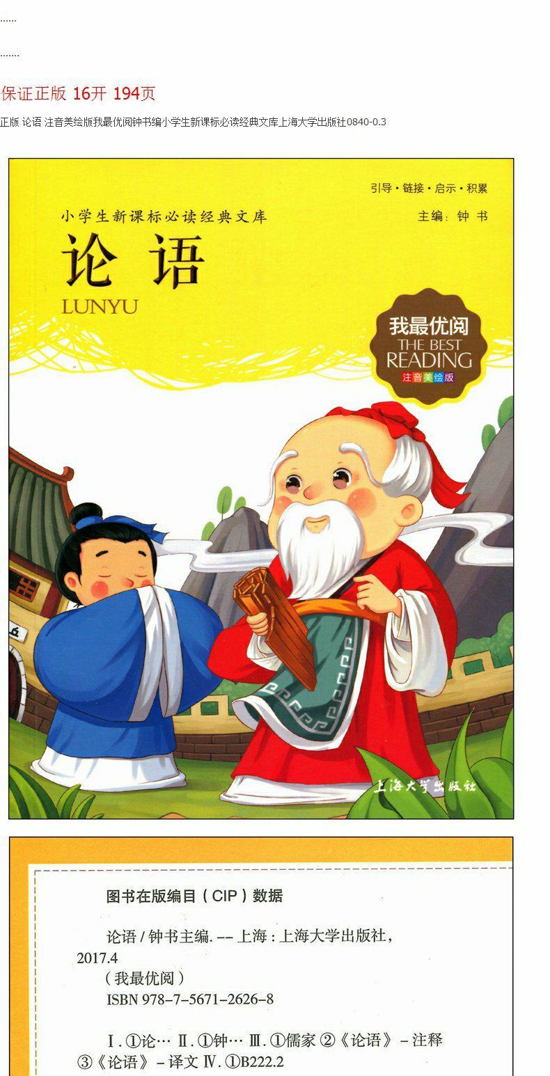 1-3年级适用 注音美绘版-论语 钟书正版少儿读物我优阅系列拼音彩图版论语 儿童文学课外读物小学生作文阅读写作能力