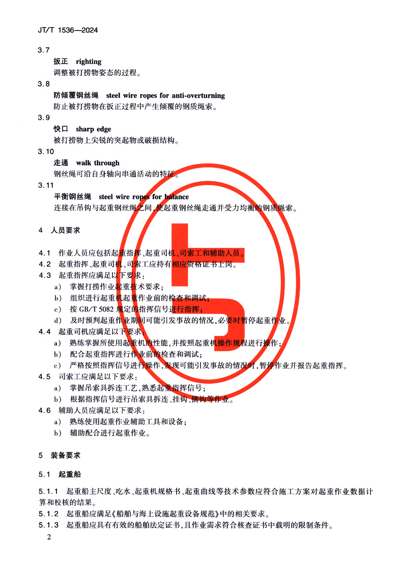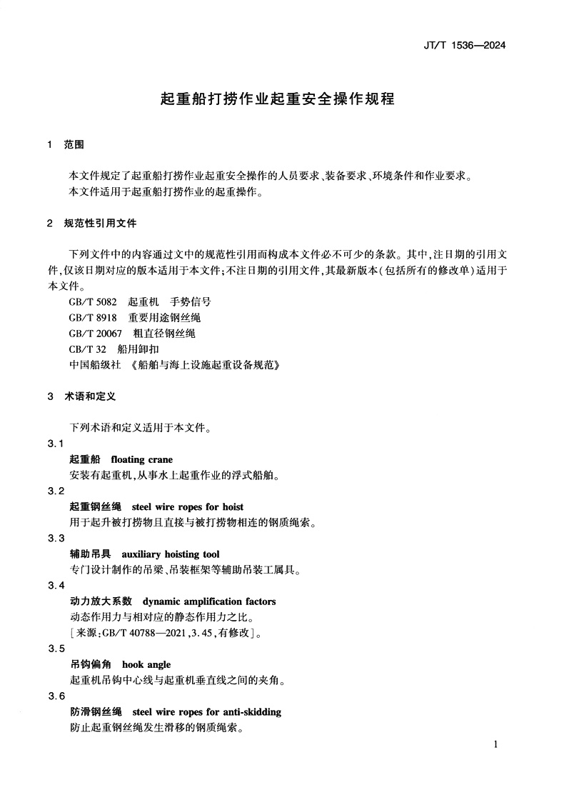 书名:起重船打捞作业起重安全操作规程(JT/T 1536—2024)