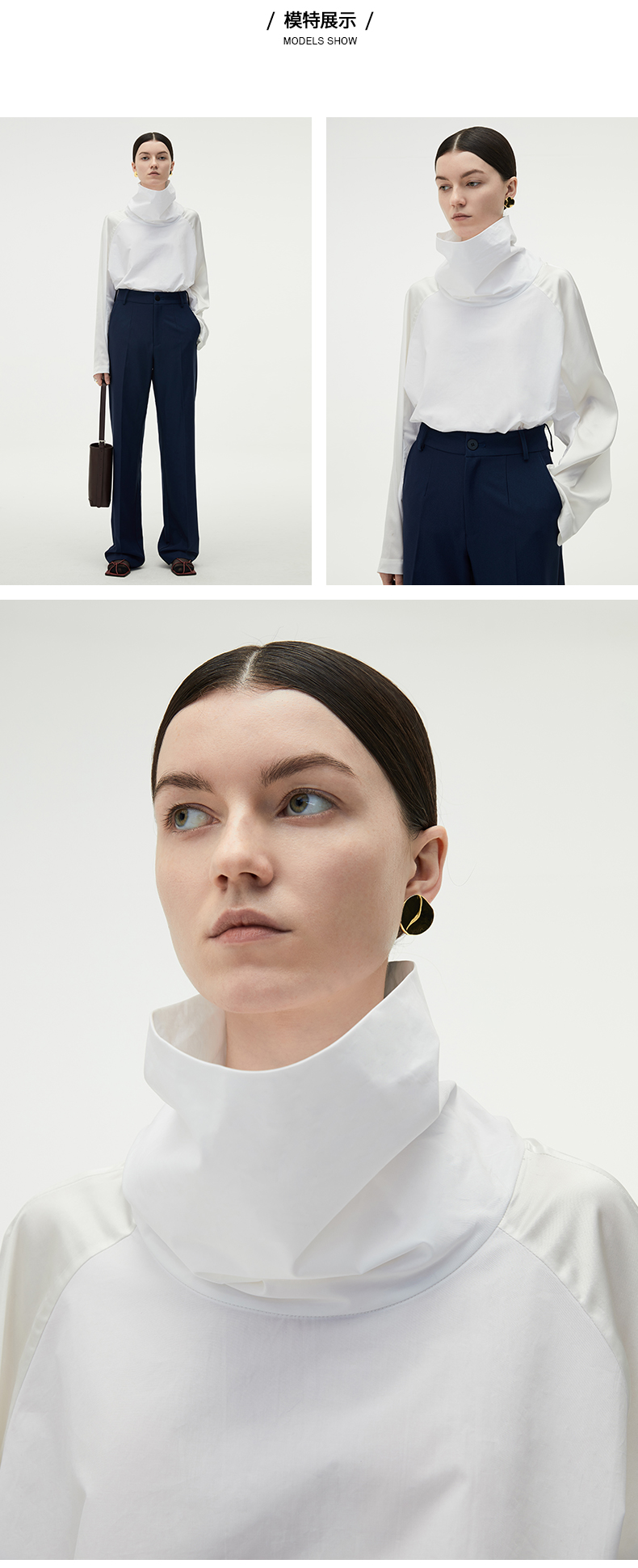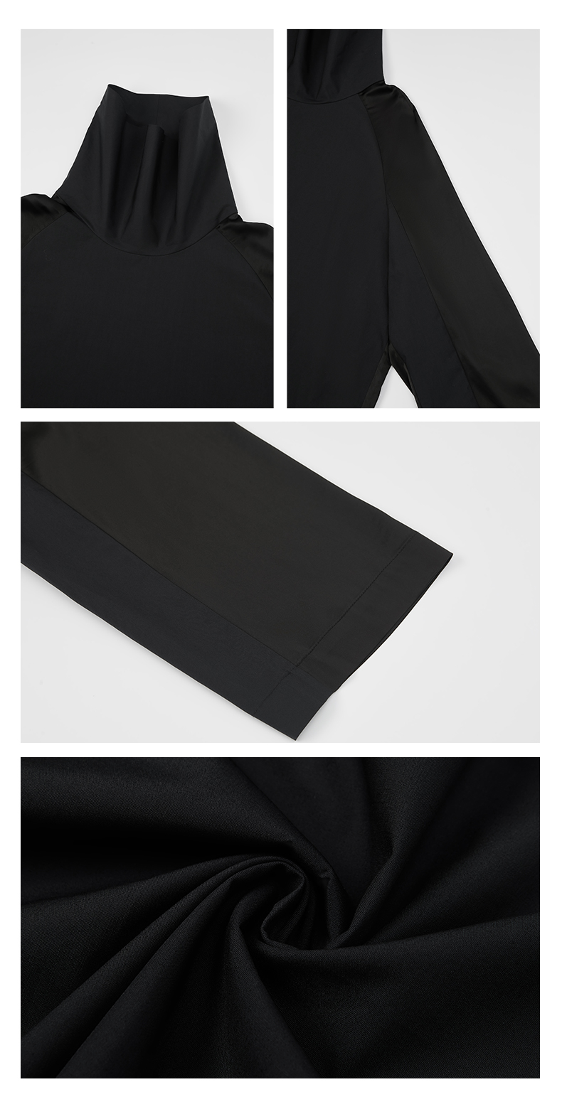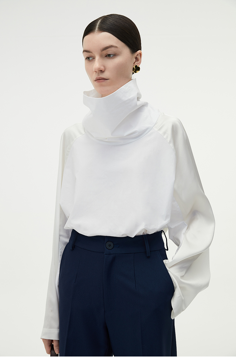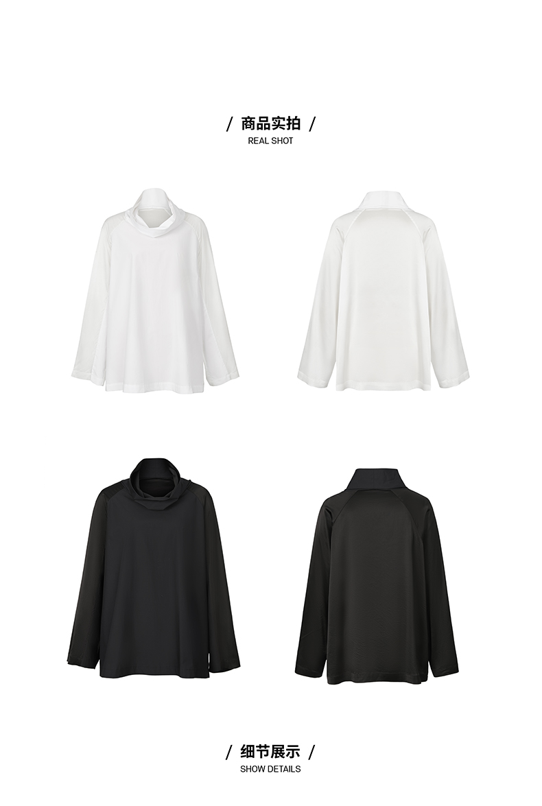 HIDEMI 醋酸缎拼接立领简约上衣 黑色/白色