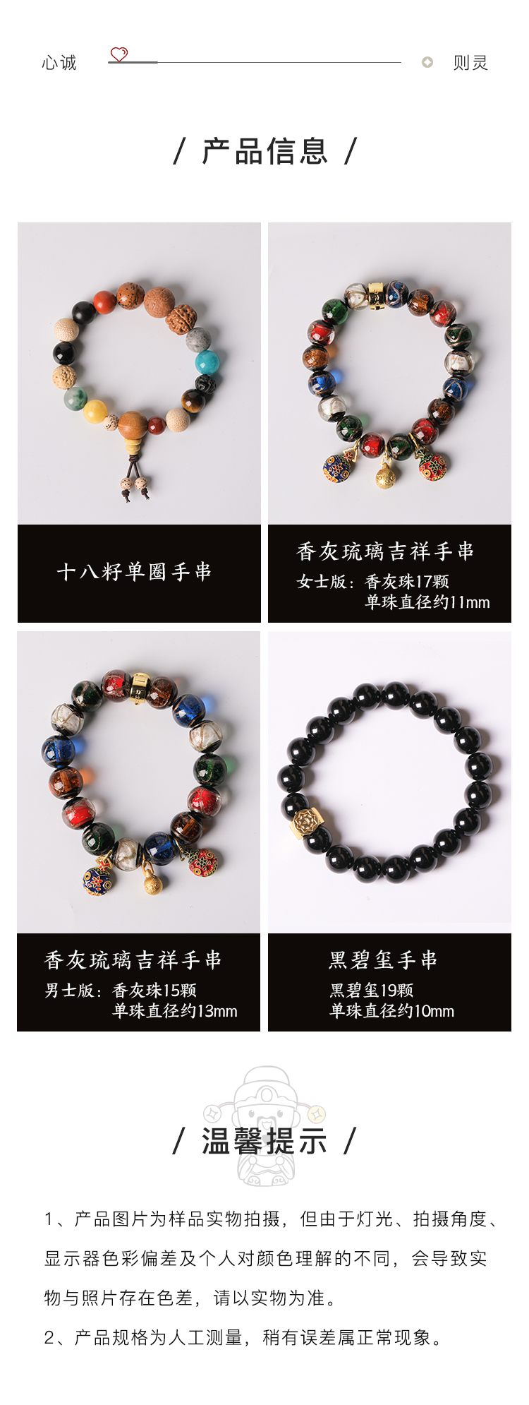 杭州北高峰财神庙福品 香灰琉璃黑碧玺手串