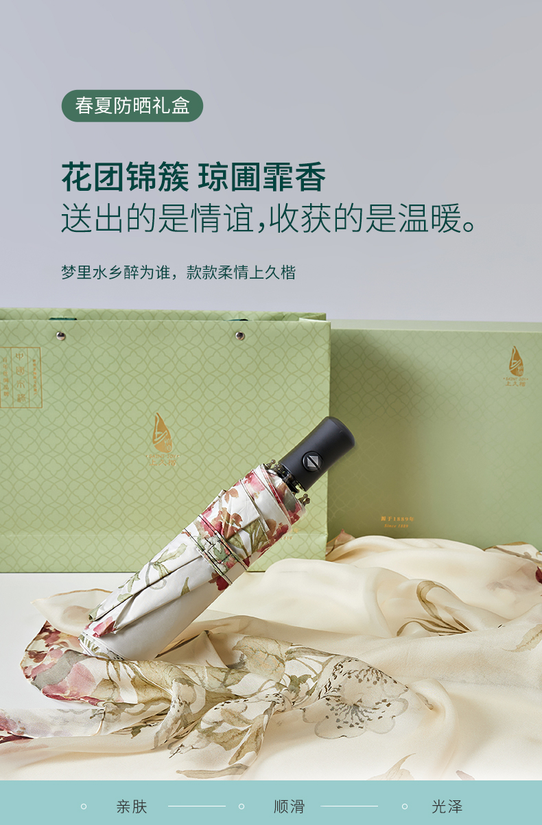 SAINTJOY/上久楷春夏季防晒礼盒 真丝长巾 防晒伞 竹影 系列