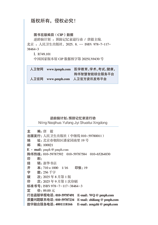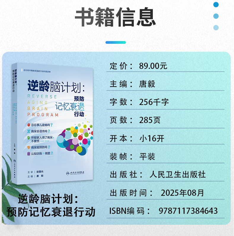 逆龄脑计划:预防记忆衰退行动 应对老年期痴呆国家行动科普读物 唐毅 主编 全书详细阐述认知障碍疾病预防知识 人民卫生出版社