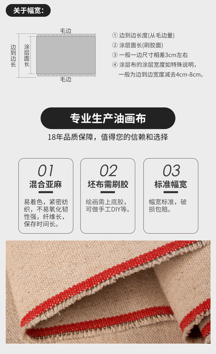 幅宽 170cm 240cm 中盛画材 H2234亚麻混纺中纹油画布 幅宽170cm 加厚型原创用布