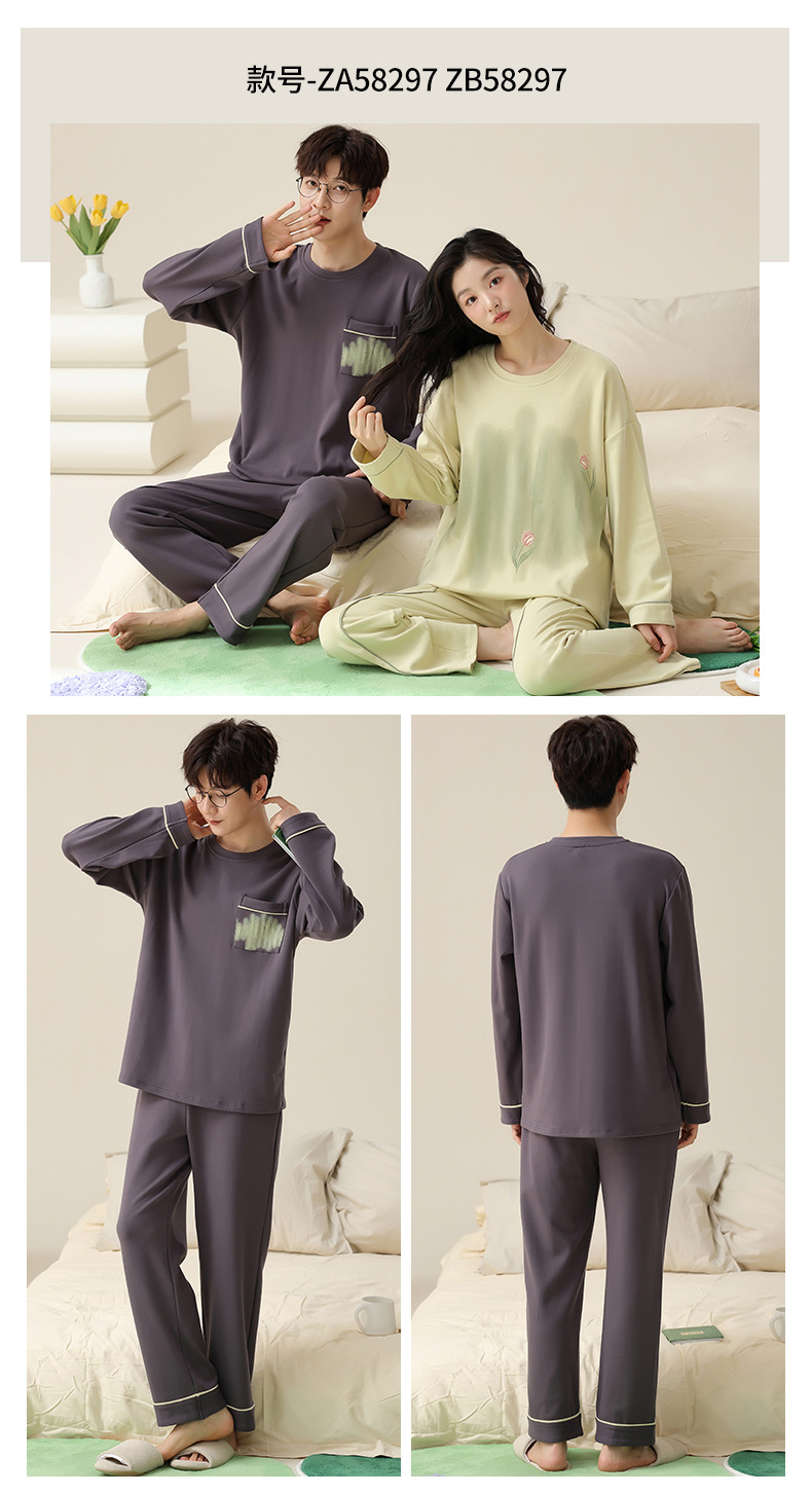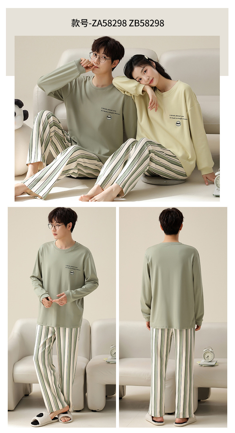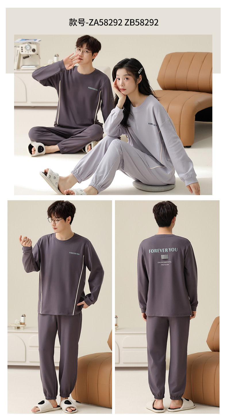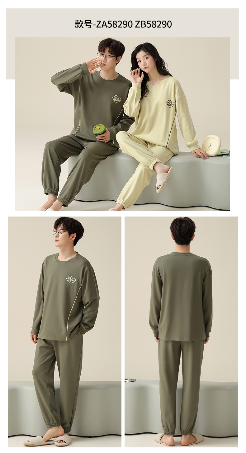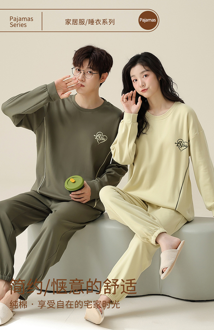 【138元/2套】【全棉可外穿家居服】情侣纯棉睡衣 女士带胸垫休闲家居服 男士长袖套装 可外穿家居服