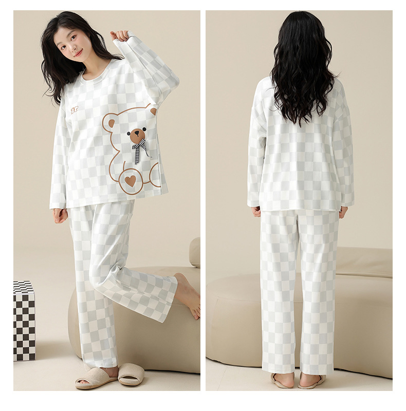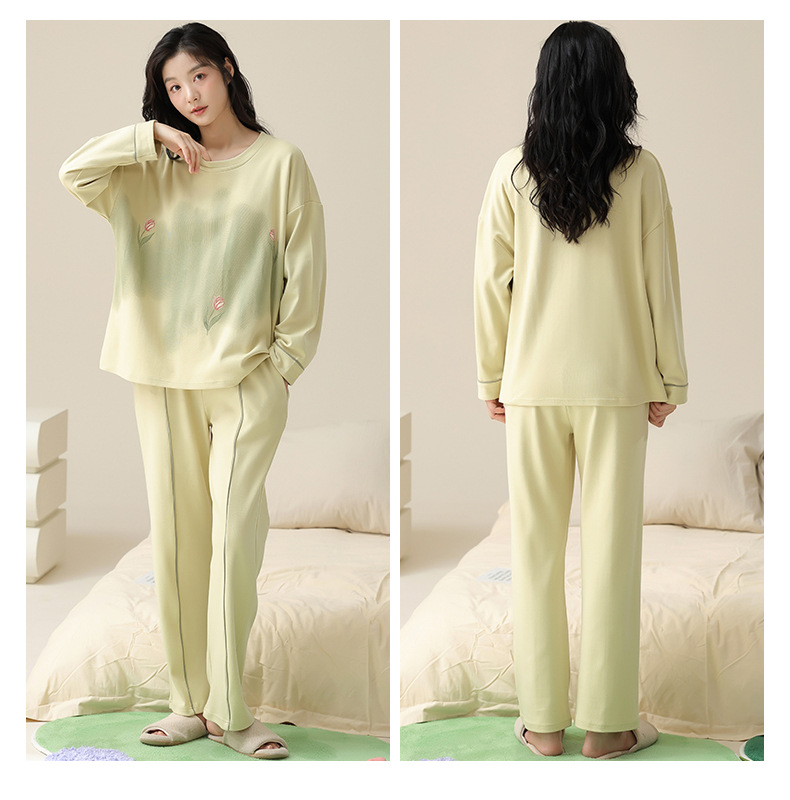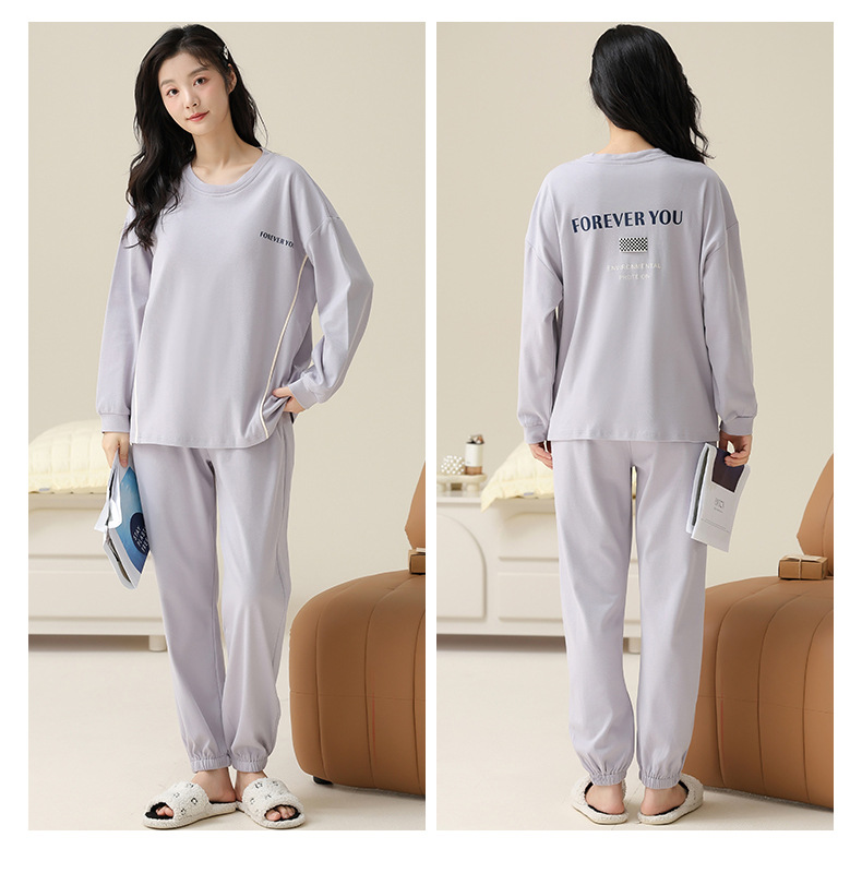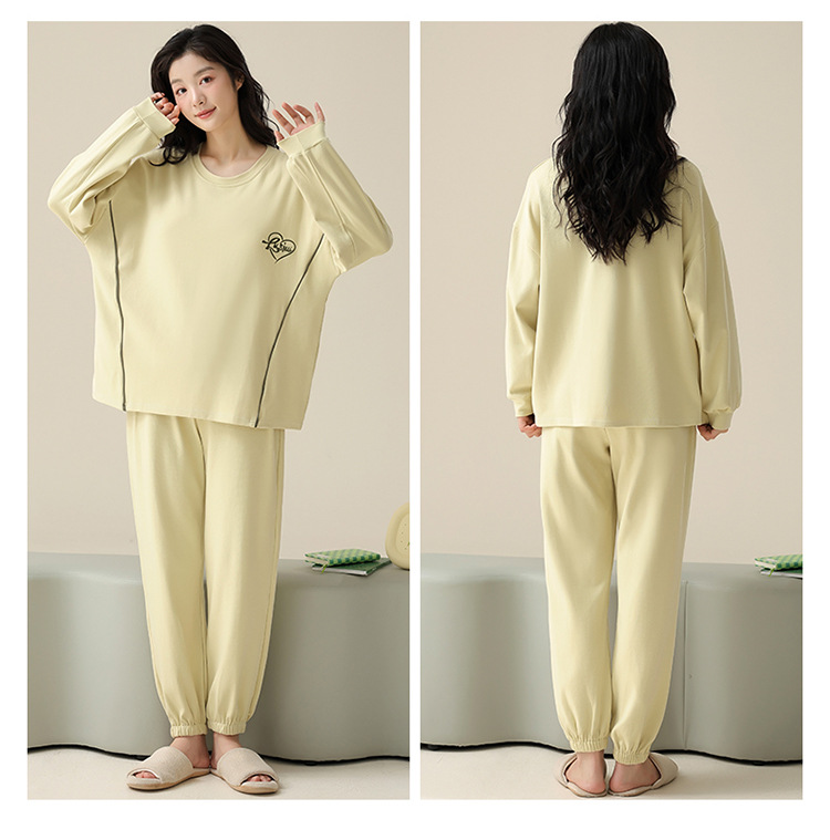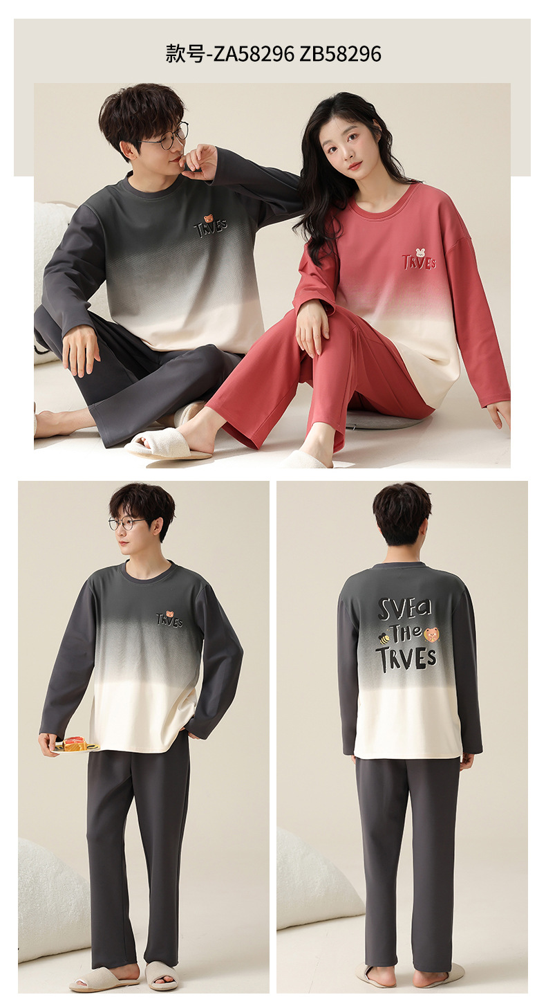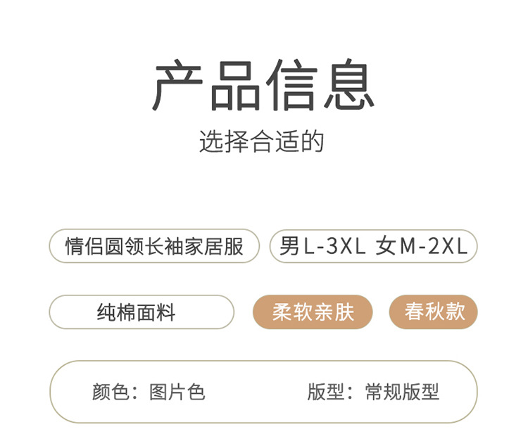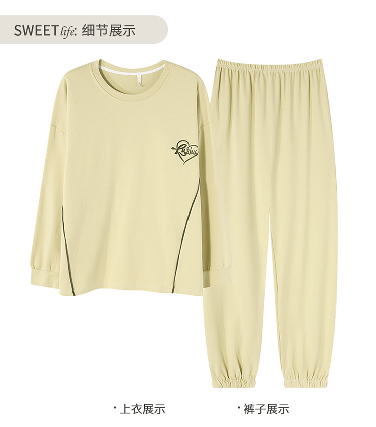 【138元/2套】【全棉可外穿家居服】情侣纯棉睡衣 女士带胸垫休闲家居服 男士长袖套装 可外穿家居服