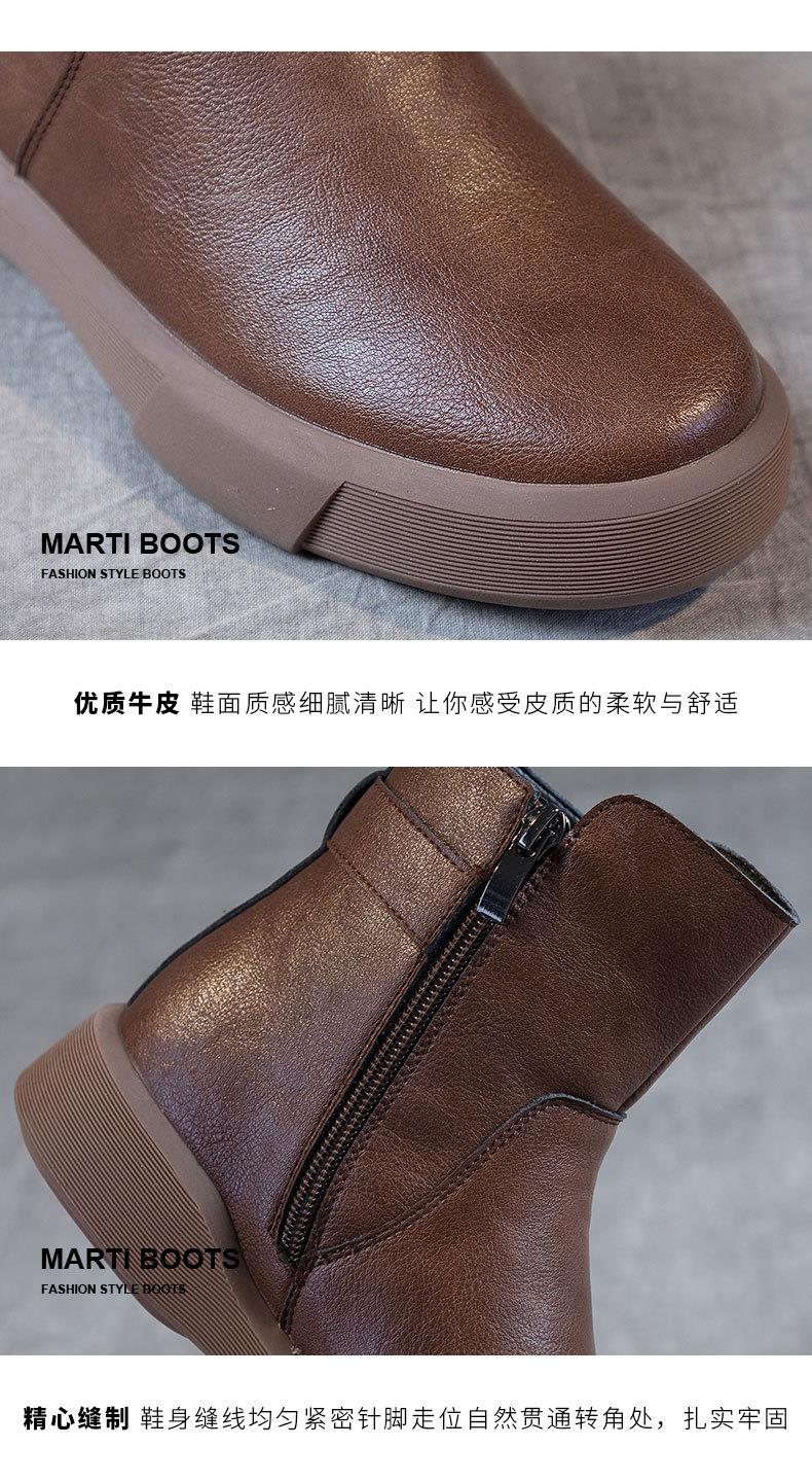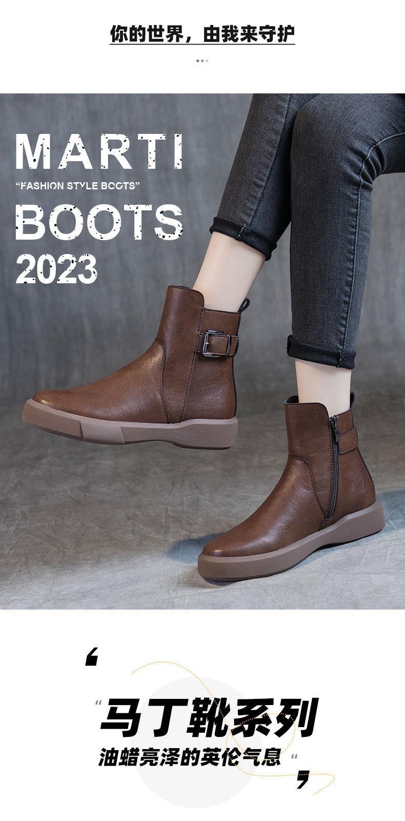 秋冬复古真皮马丁靴女2025年爆款百搭短靴低筒厚底瘦瘦骑士靴