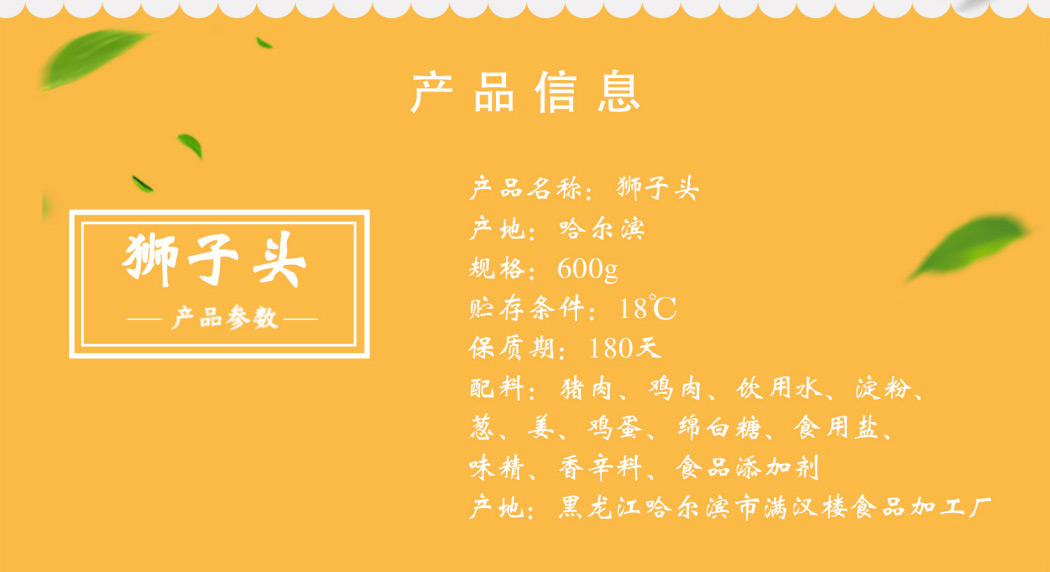 【浓而不腻 咸中微甜】满汉楼御宴速冻狮子头600g/袋*2袋
