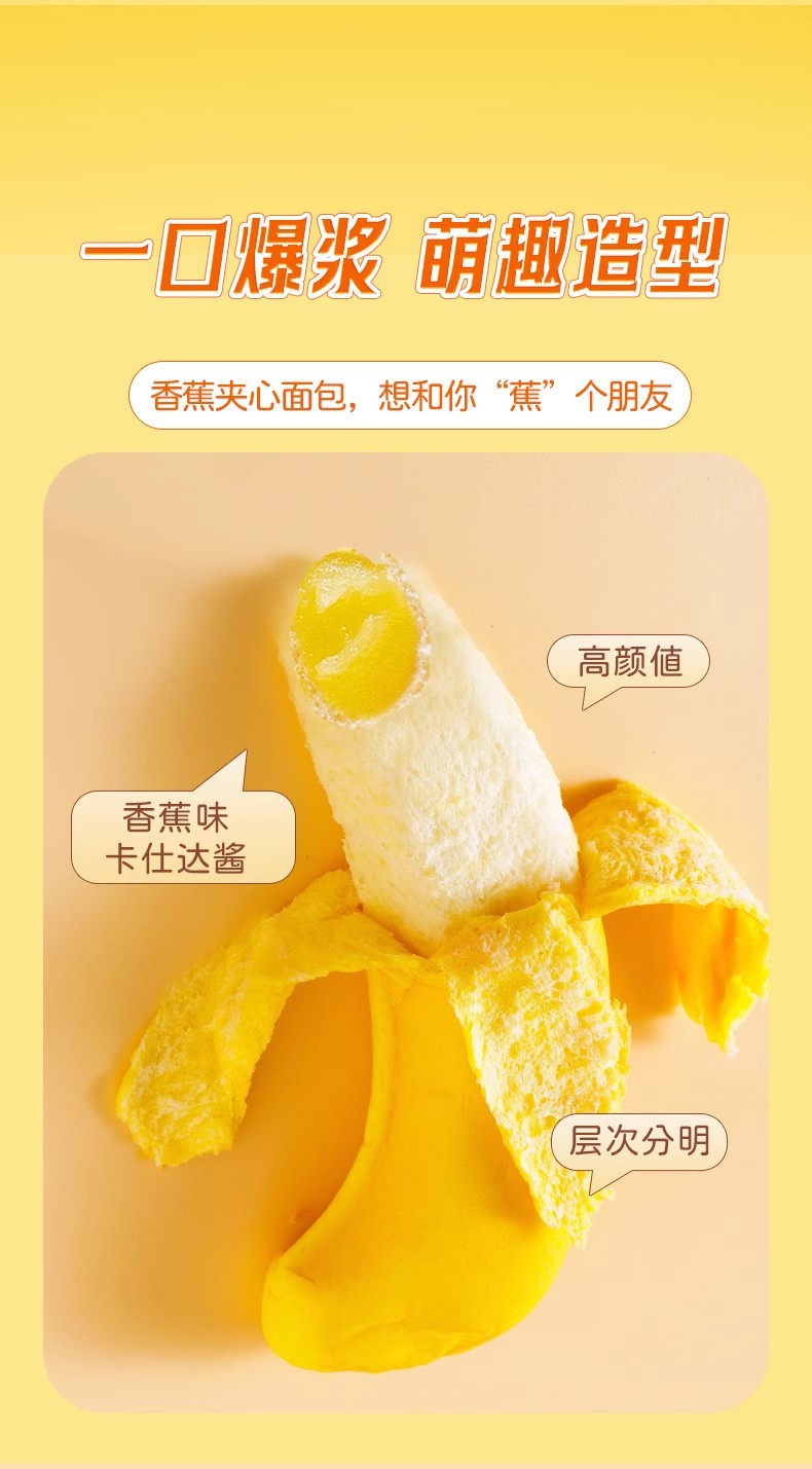 【可剥皮的面包!香蕉面包】香蕉夹心面包,萌趣造型 一口爆浆!口感松软湿润 浓郁蕉香,早餐蛋糕糕点食品代餐零食Y