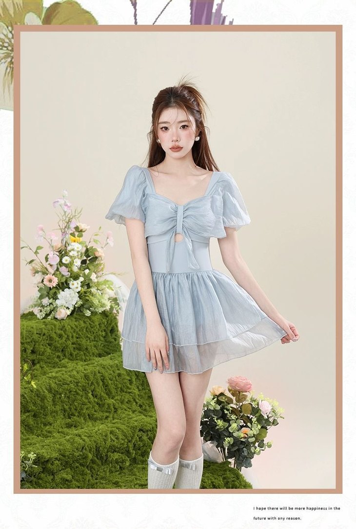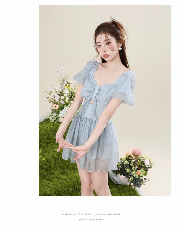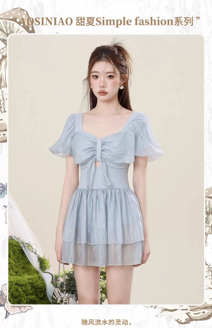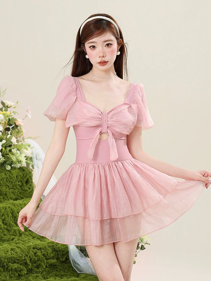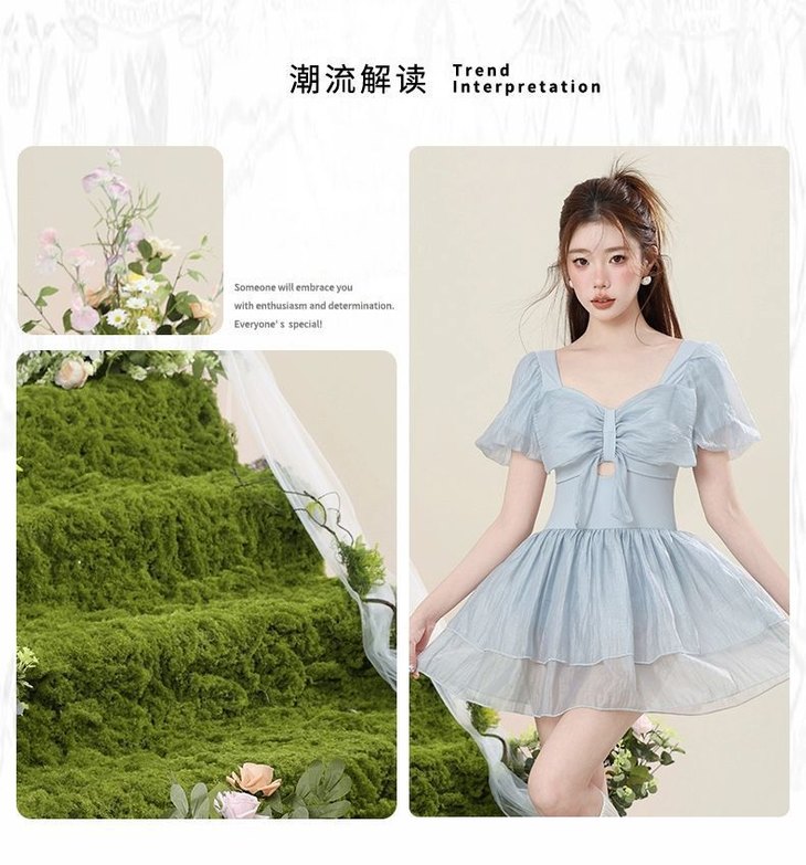 连体泡温泉泳衣女新款保守显瘦遮肚感裙式遮肉游泳装