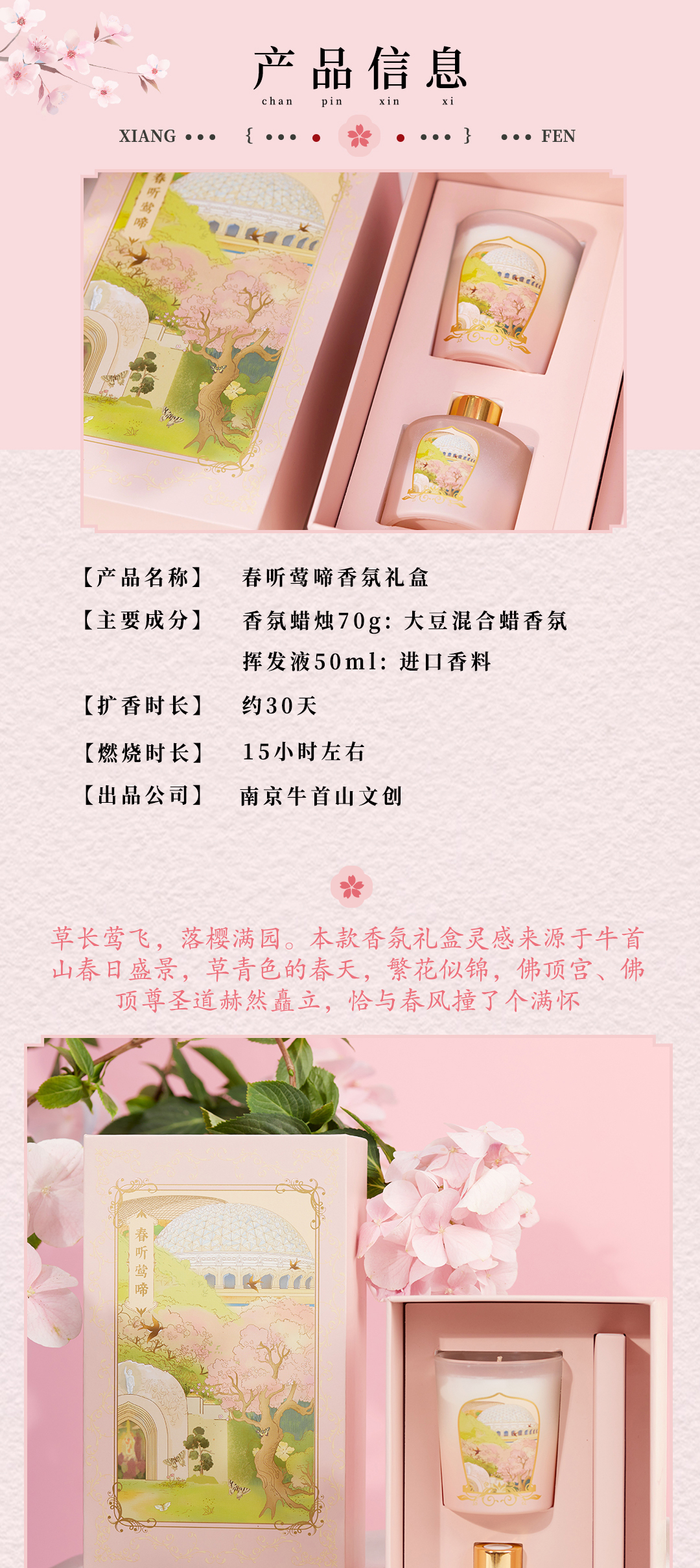 牛首山春听莺啼香氛礼盒蜡烛熏香散香器清新持久高级家用房间卧室