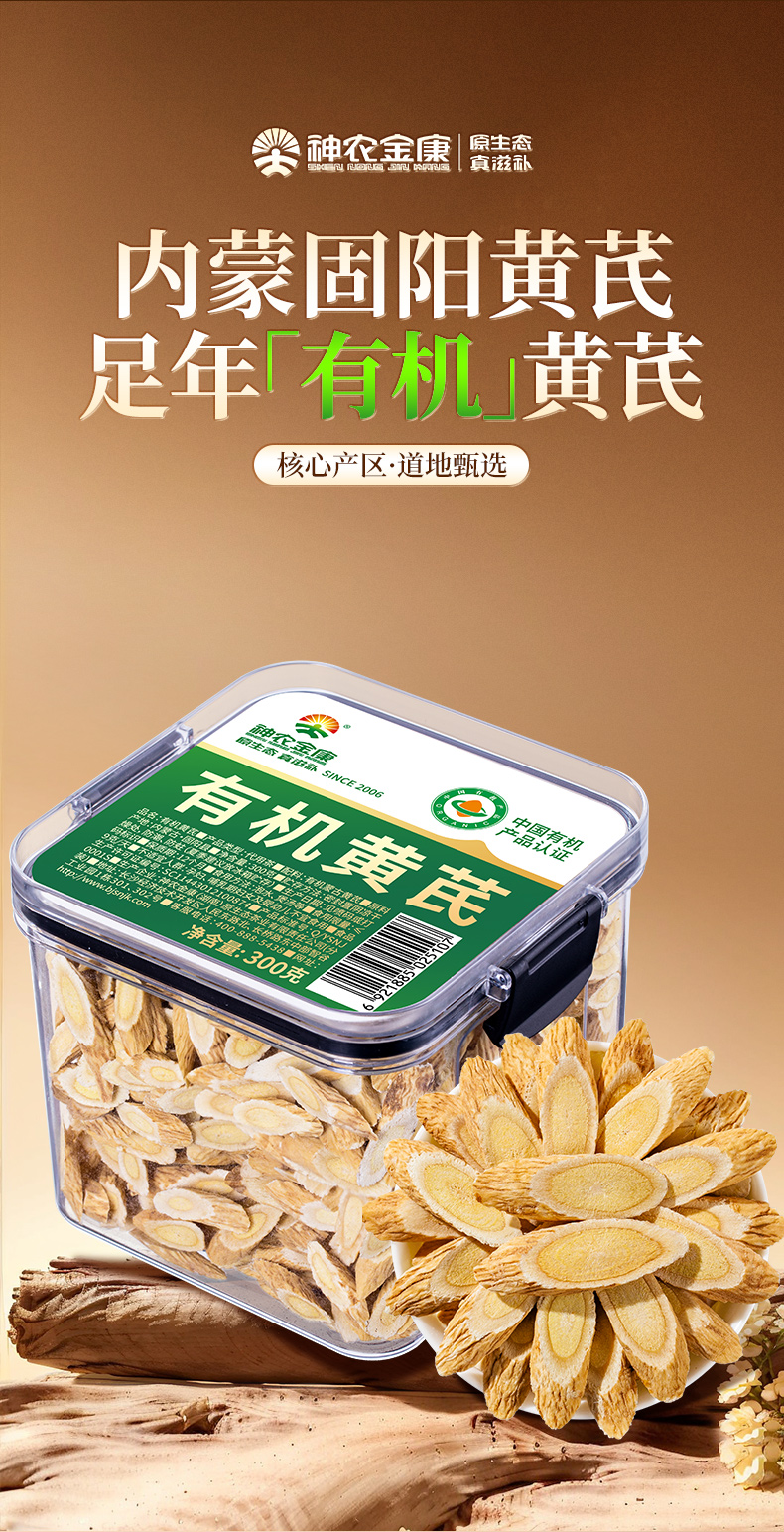【密封罐】神农金康 有机黄芪300g/罐 原生态真滋补