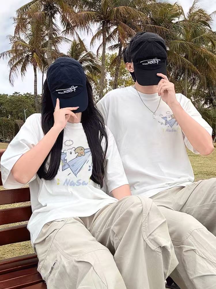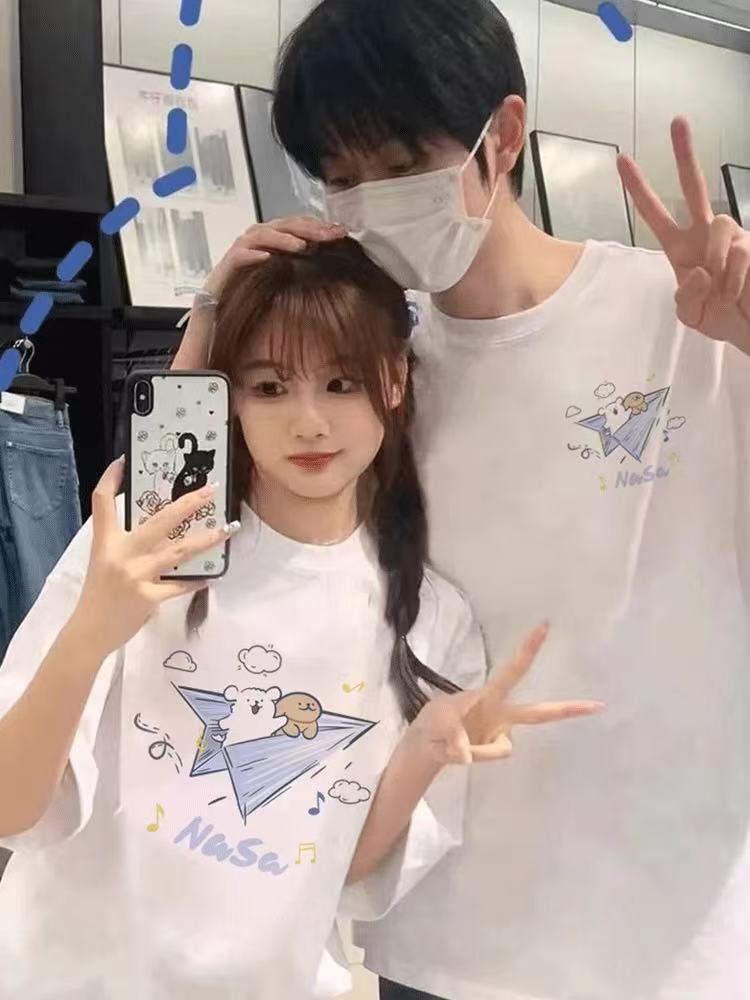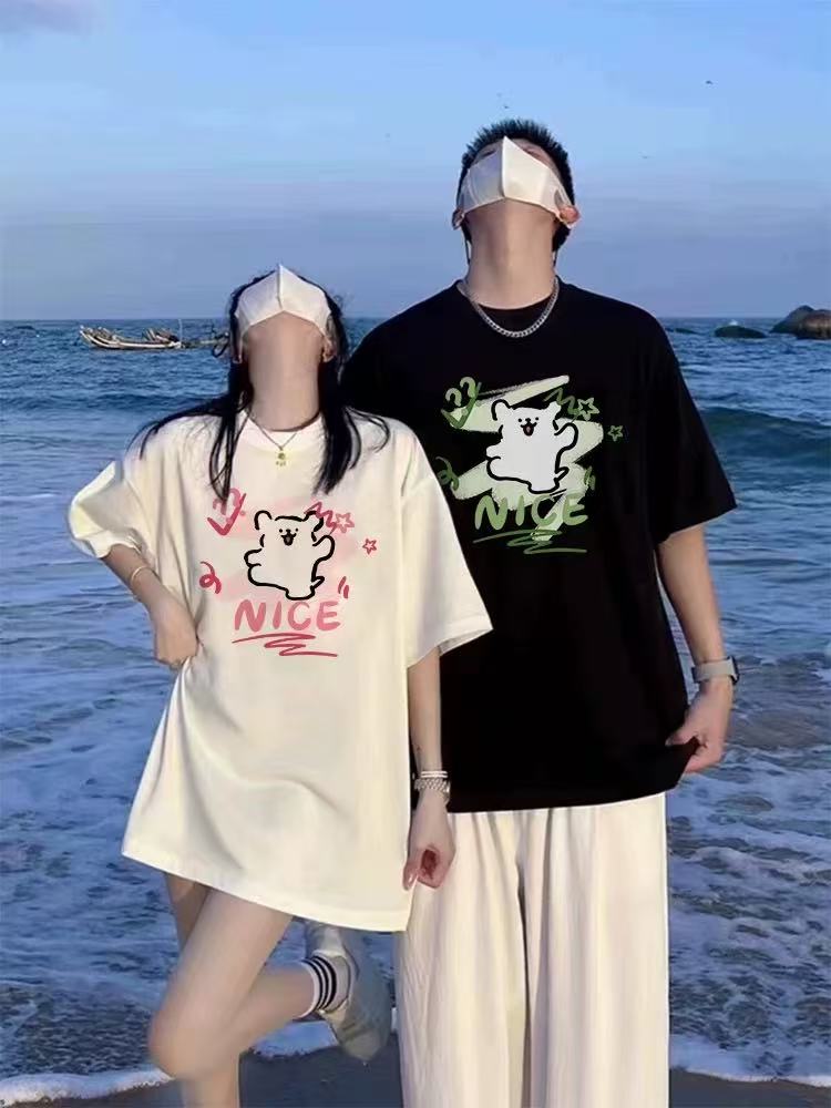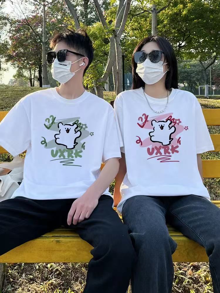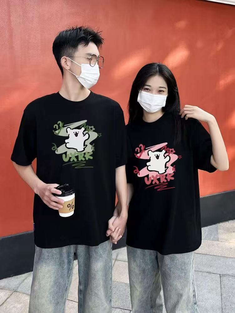 【YW】无忧购韩系ins百搭休闲卡通印花180g纯棉情侣短袖T恤(截单后3-5天发货)