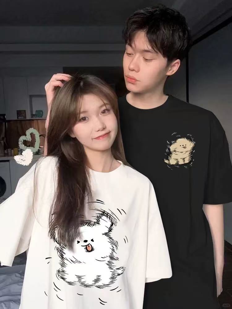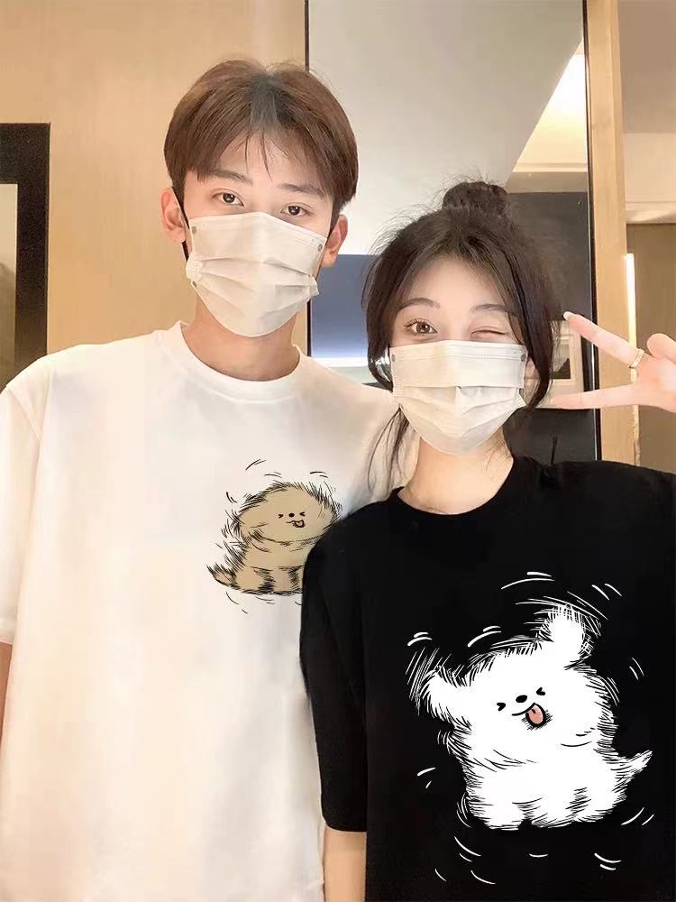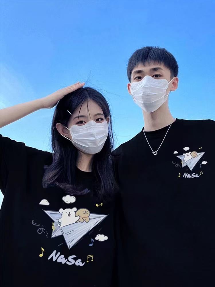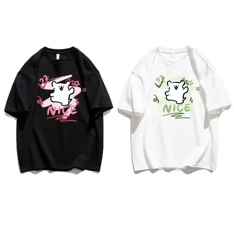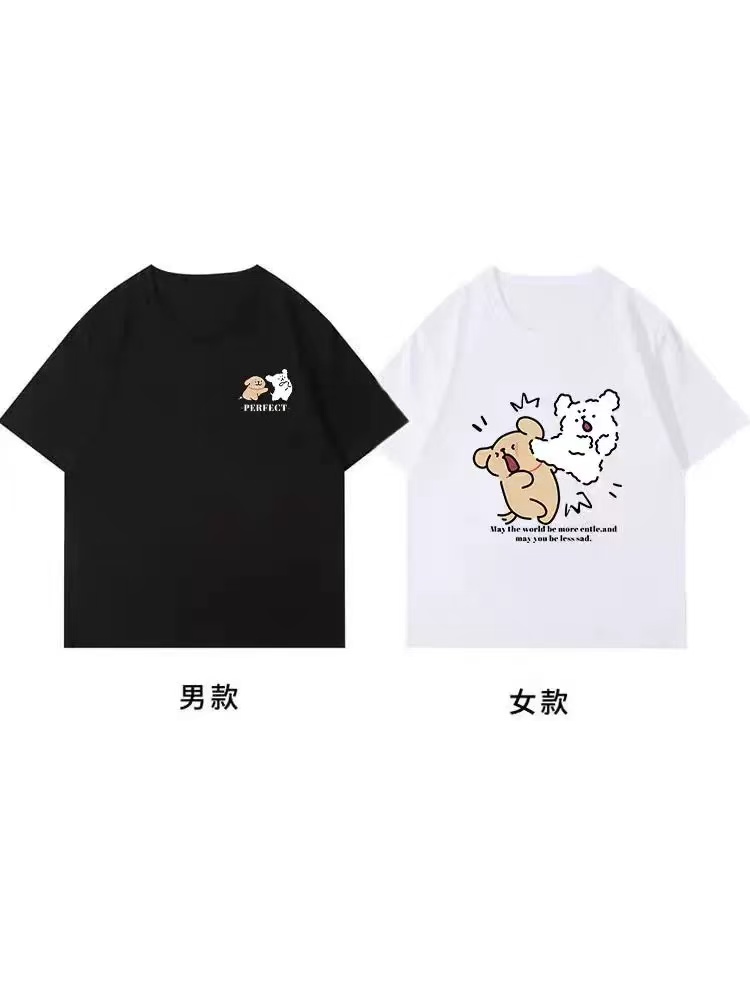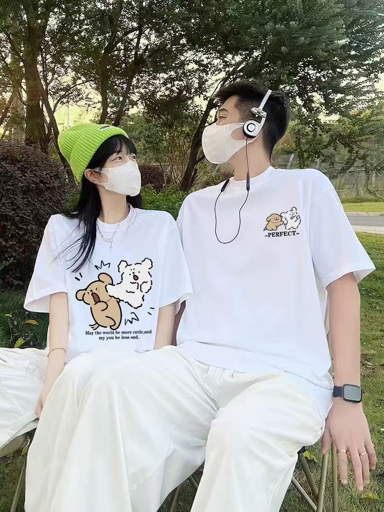 【YW】无忧购韩系ins百搭休闲卡通印花180g纯棉情侣短袖T恤(截单后3-5天发货)
