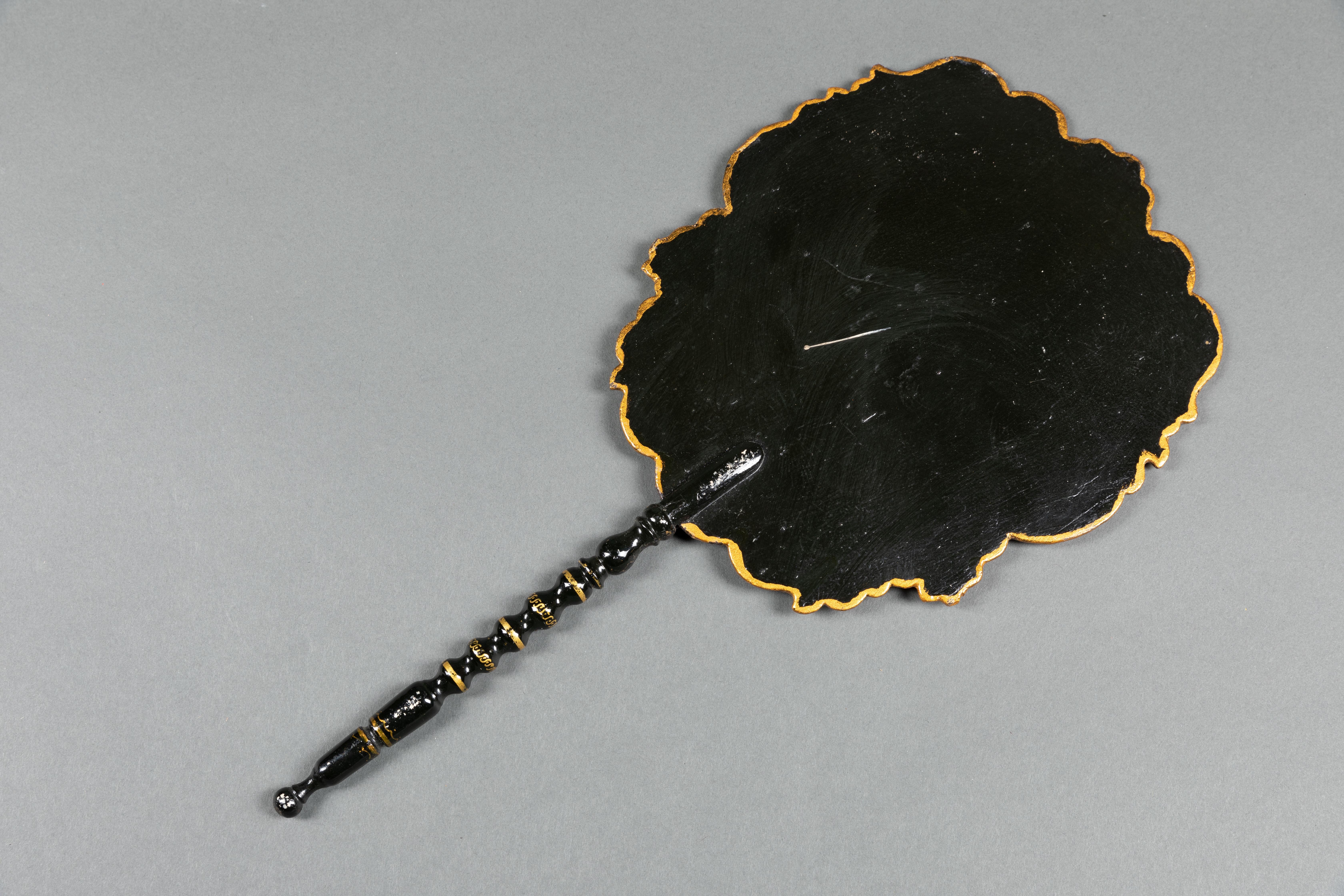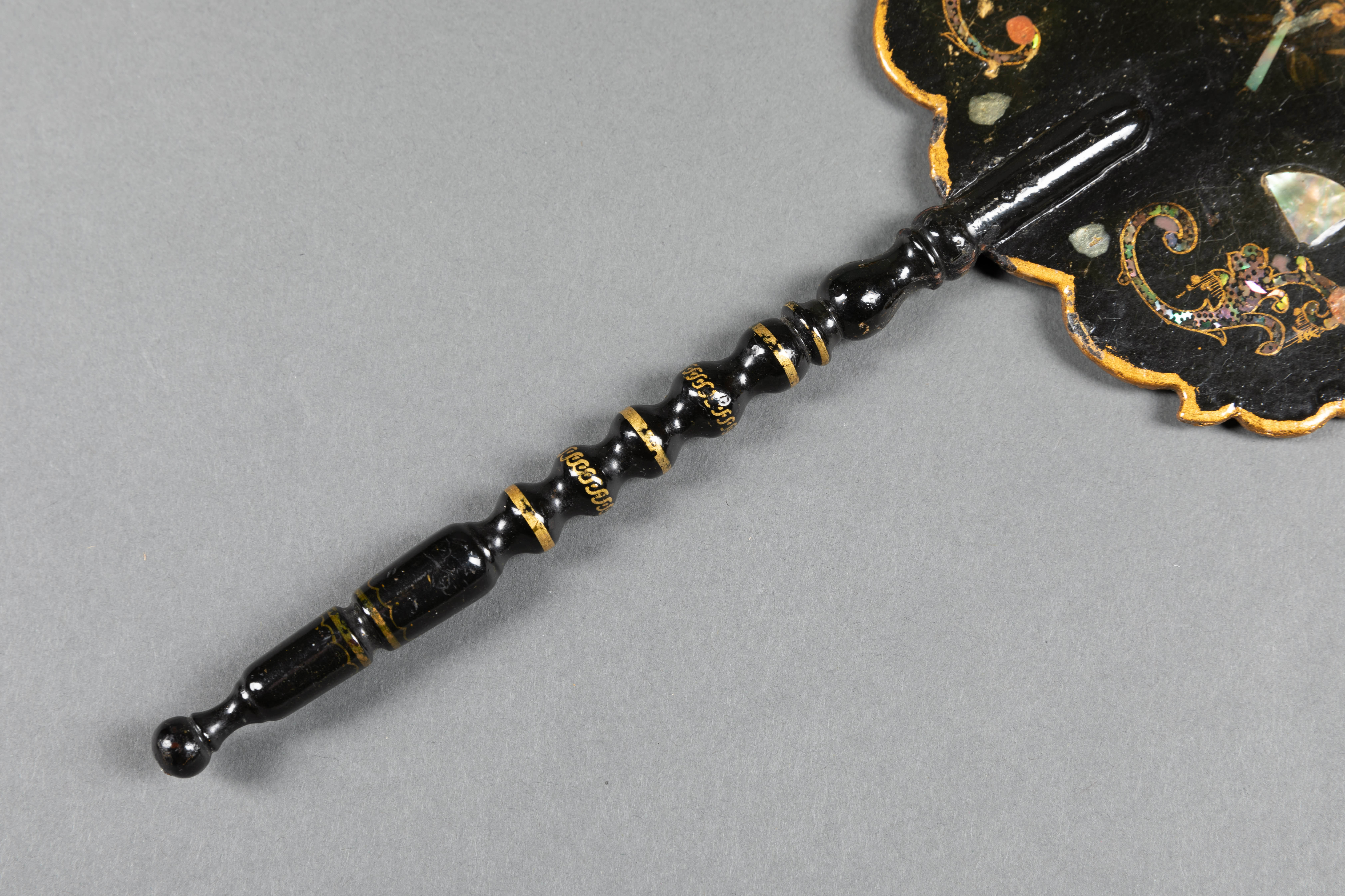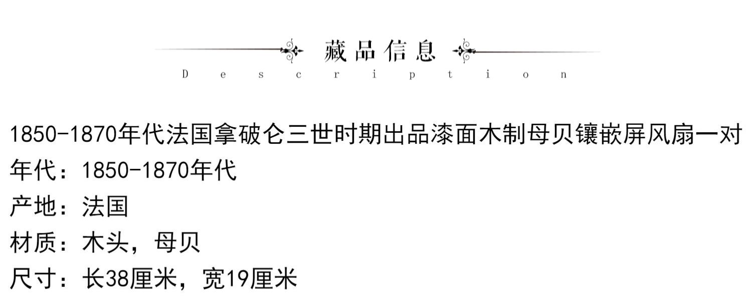 独角鹿西洋古董法国拿破仑三世时期漆面木制母贝镶嵌屏风扇一对