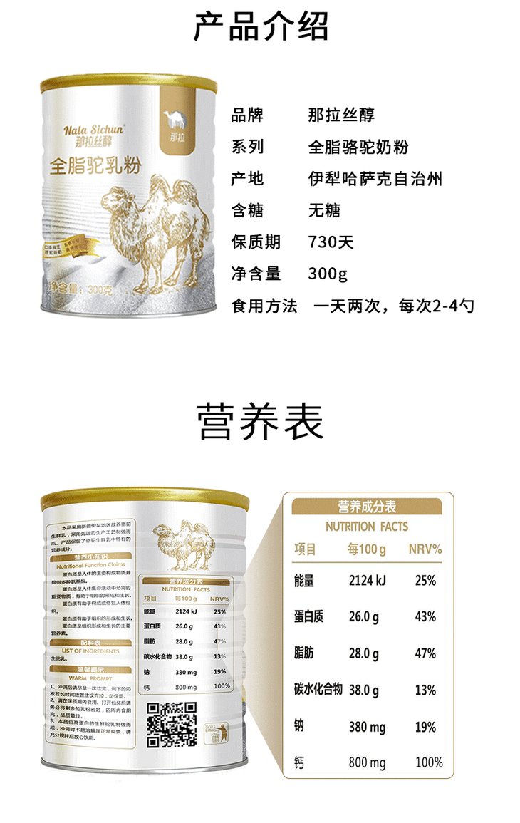 2罐 那拉丝醇全脂骆驼奶粉300g