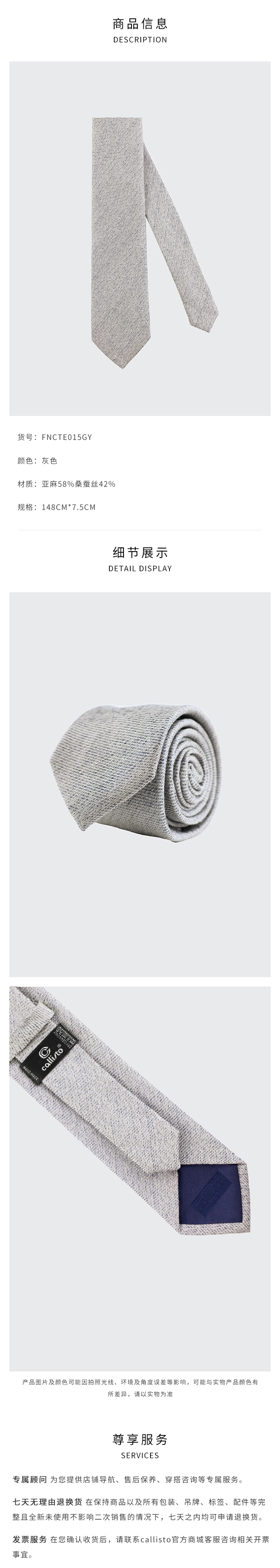 callisto灰色亚麻混纺领带 FNCTE015GY