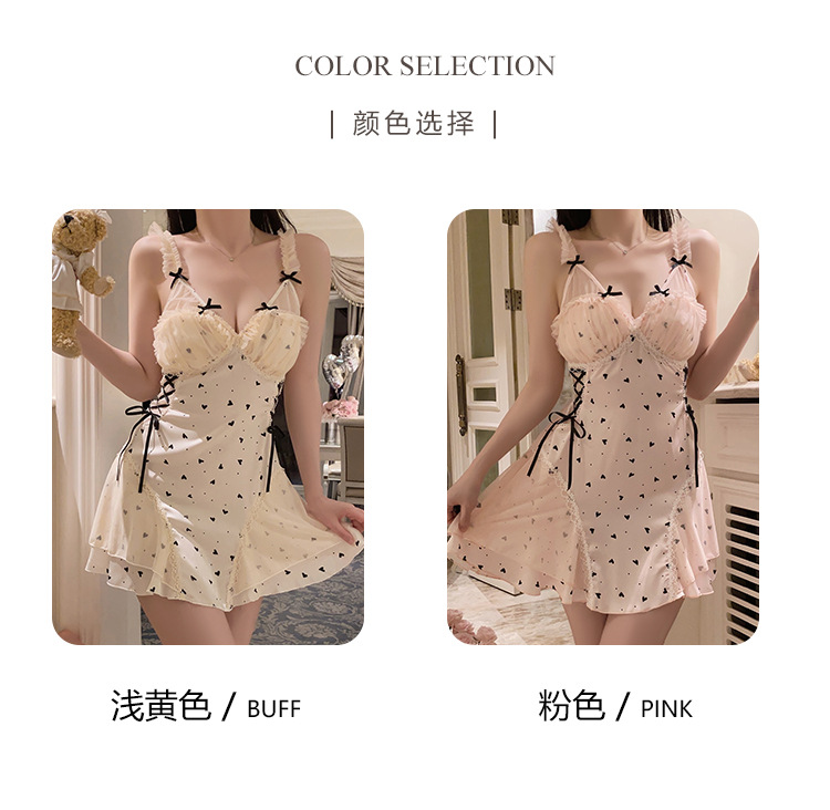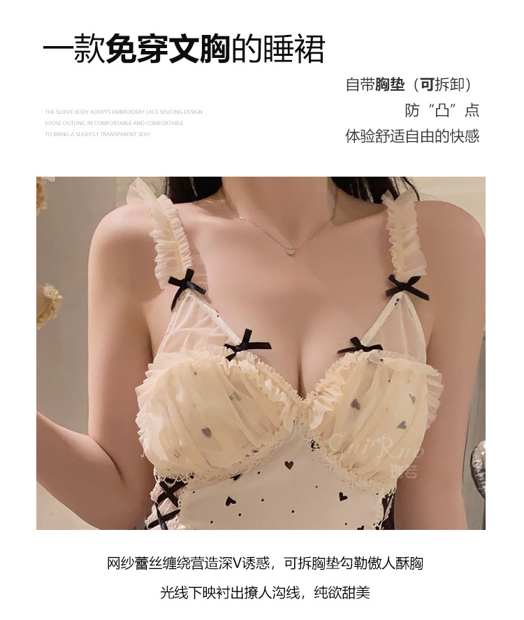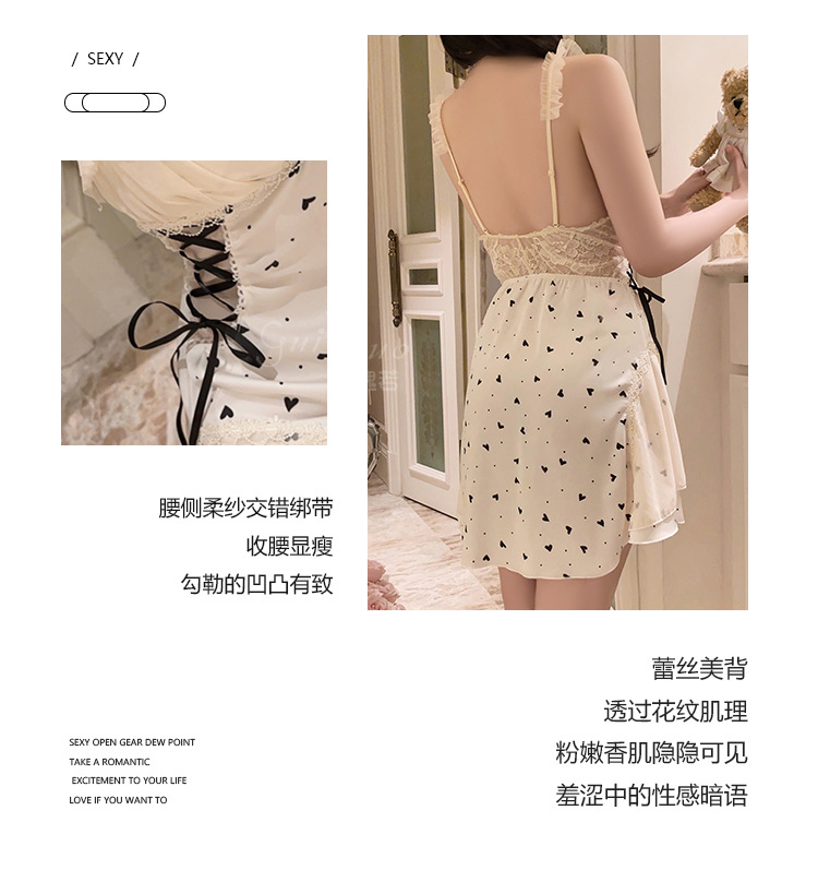 【YW】无忧购甜美透视蕾丝火辣深V加胸垫睡衣4902截单后7天发货)