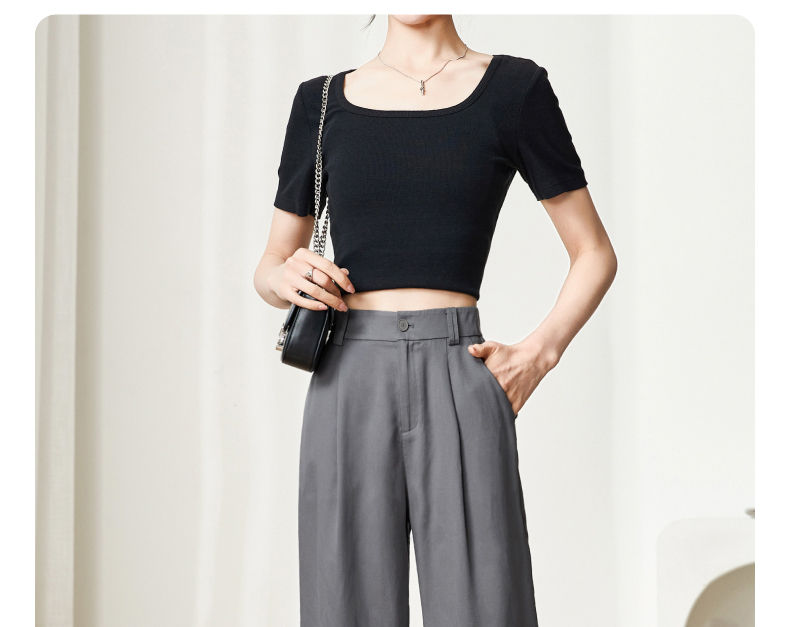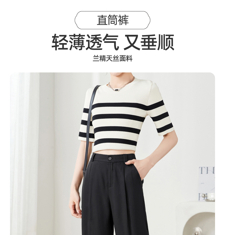 【兰精天丝直筒裤】逸阳100%天丝夏薄款窄版阔腿垂感裤子1292