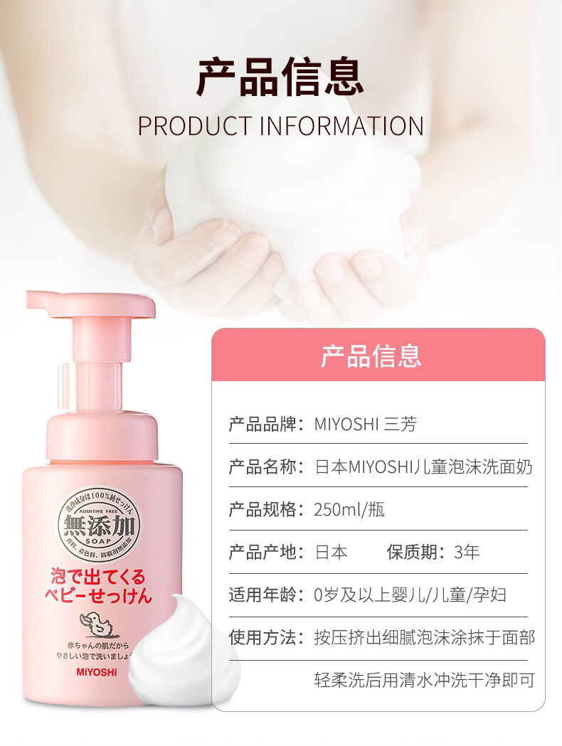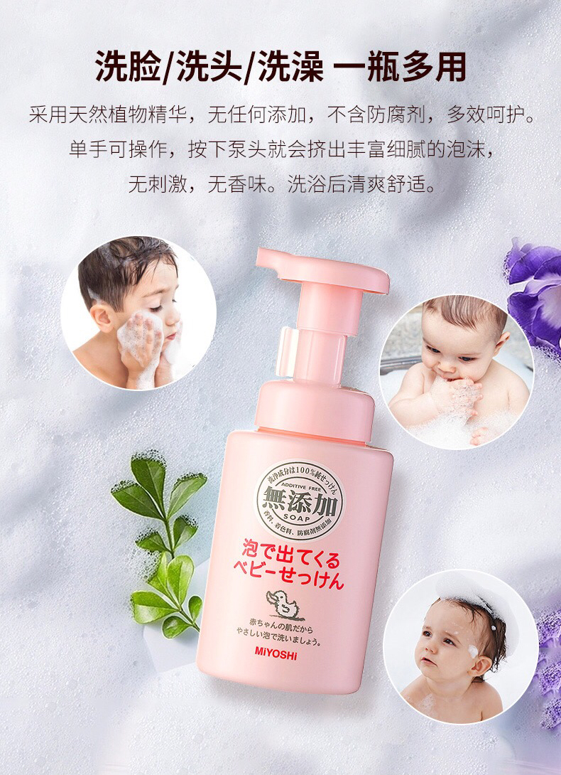 MIYOSHI三芳儿童洗面奶 脸/手/洗澡/洗头皆可 无添加 无泪配方