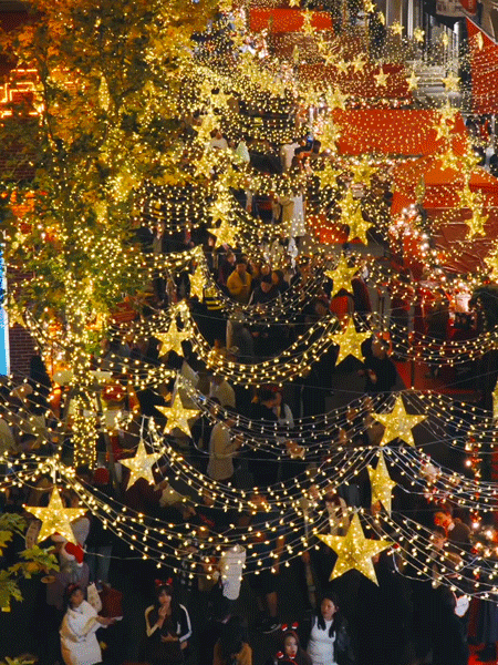 走进挂满星星灯的圆明园路,冬天的魔法就开始了。整条街像是被撒上了金粉,星星灯在头顶连成温暖的银河,随手一拍,都是朋友圈年度氛围感大片。