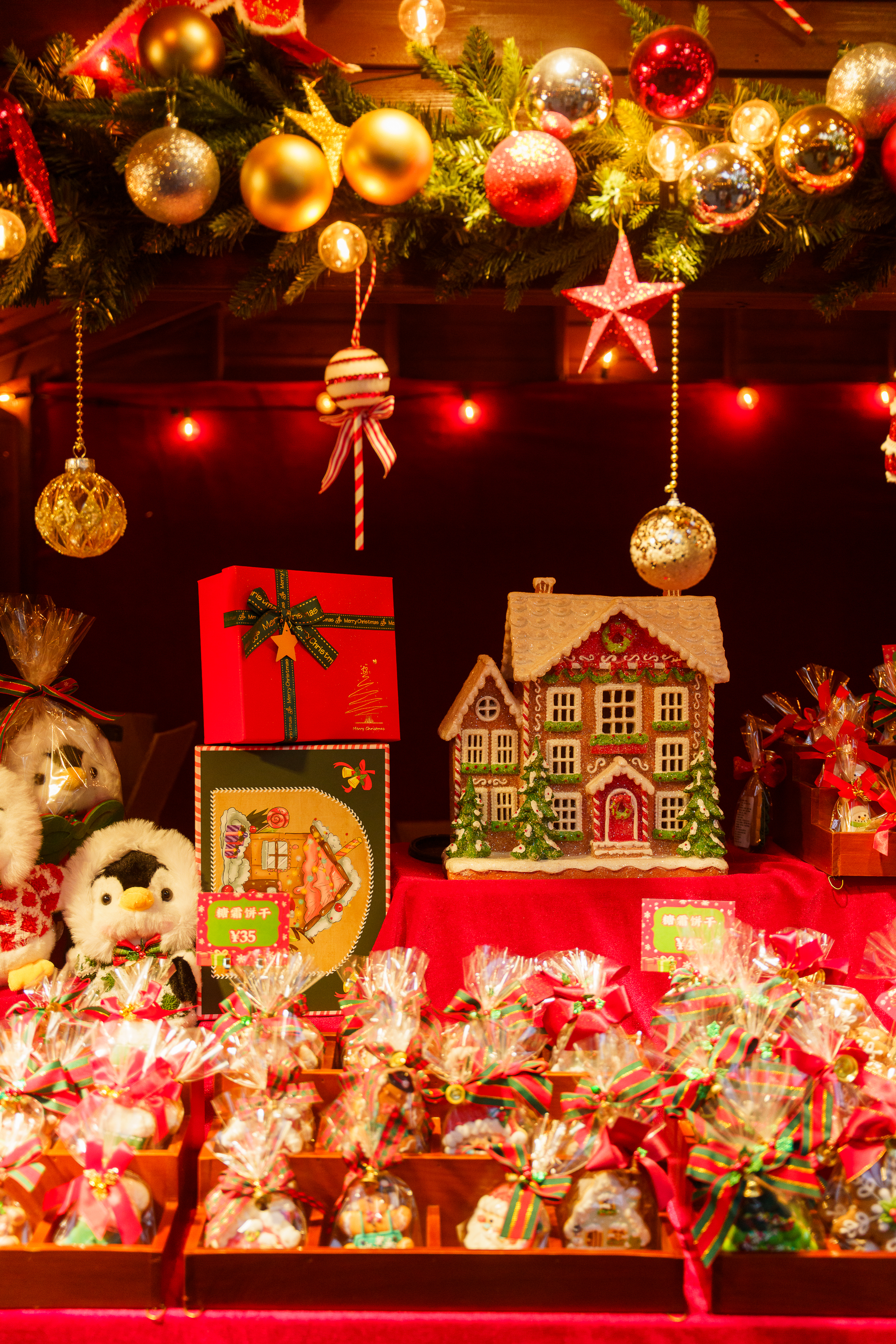 市集中央的巨型礼物盒装置,仿佛是圣诞老人提前送达的惊喜。当中尤其令人心动的瞬间,莫过于人工降雪机开启的时刻。