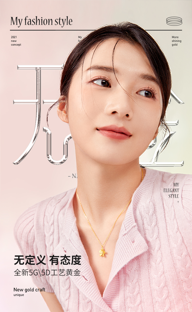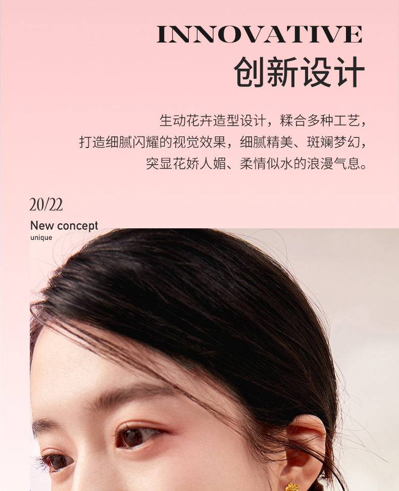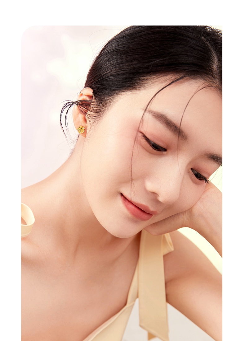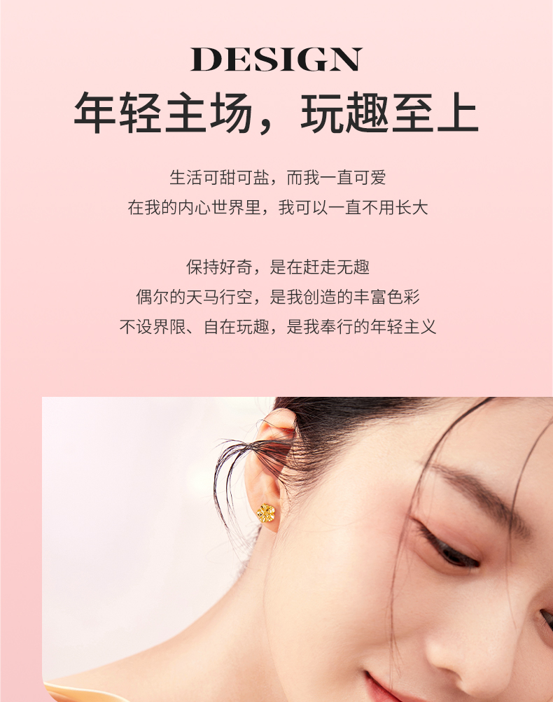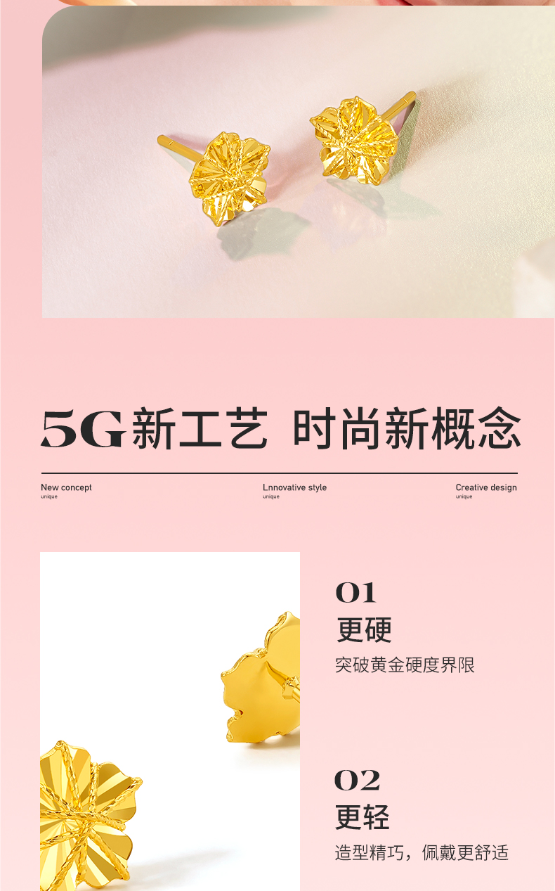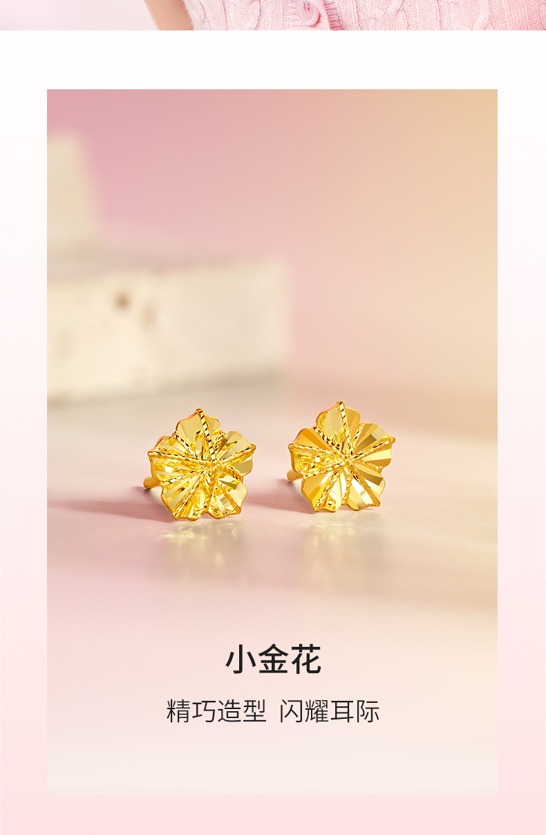 周六福5G黄金耳钉女2代无极金系列足金计价金花耳饰送女友礼物