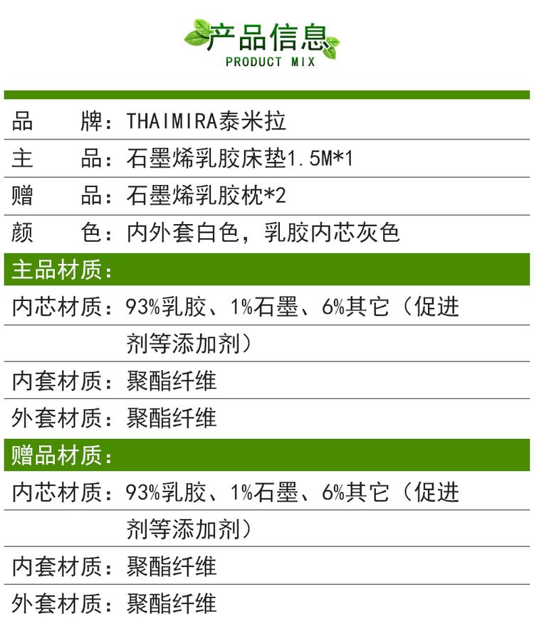 Thaimira泰国石墨烯乳胶床垫1.5m