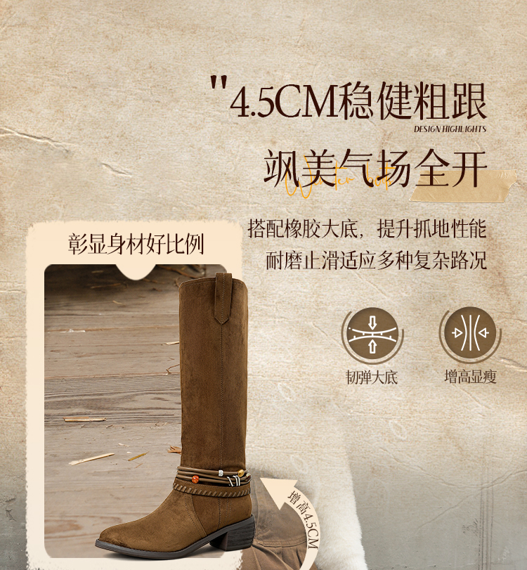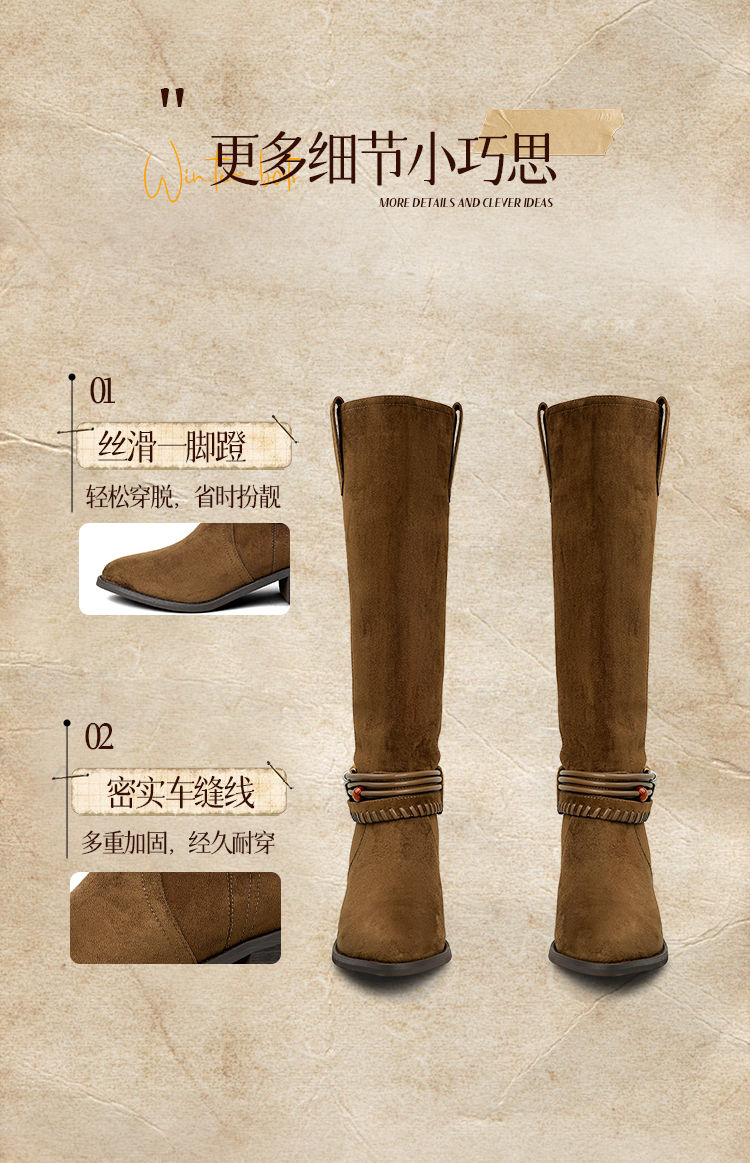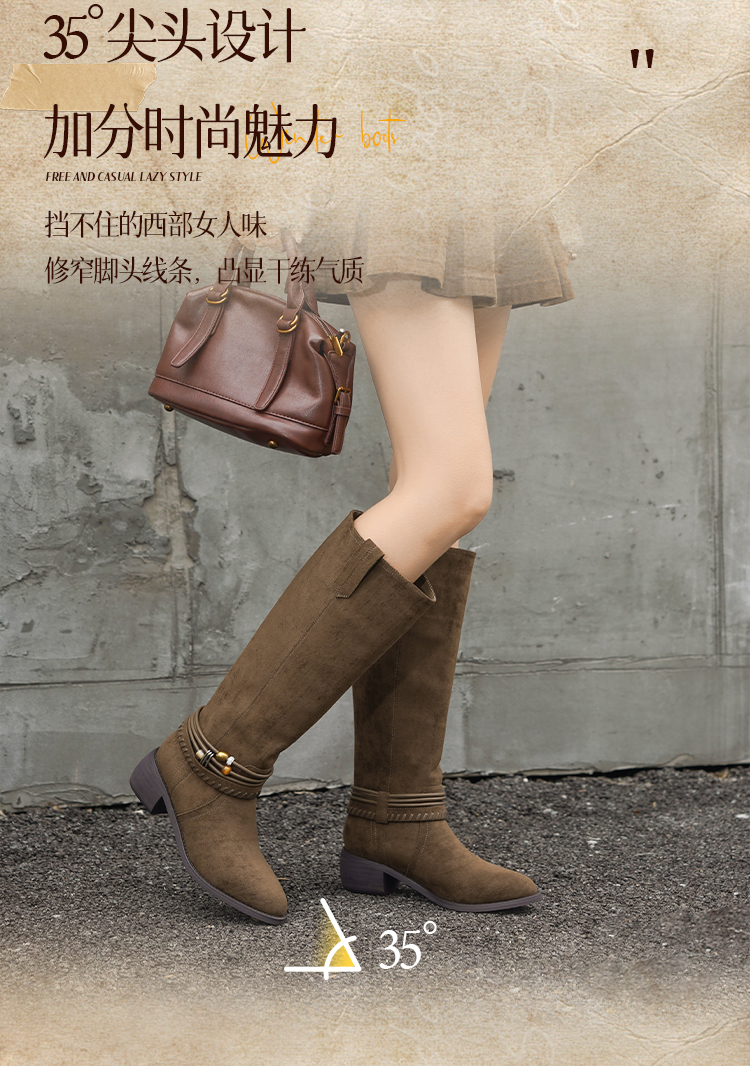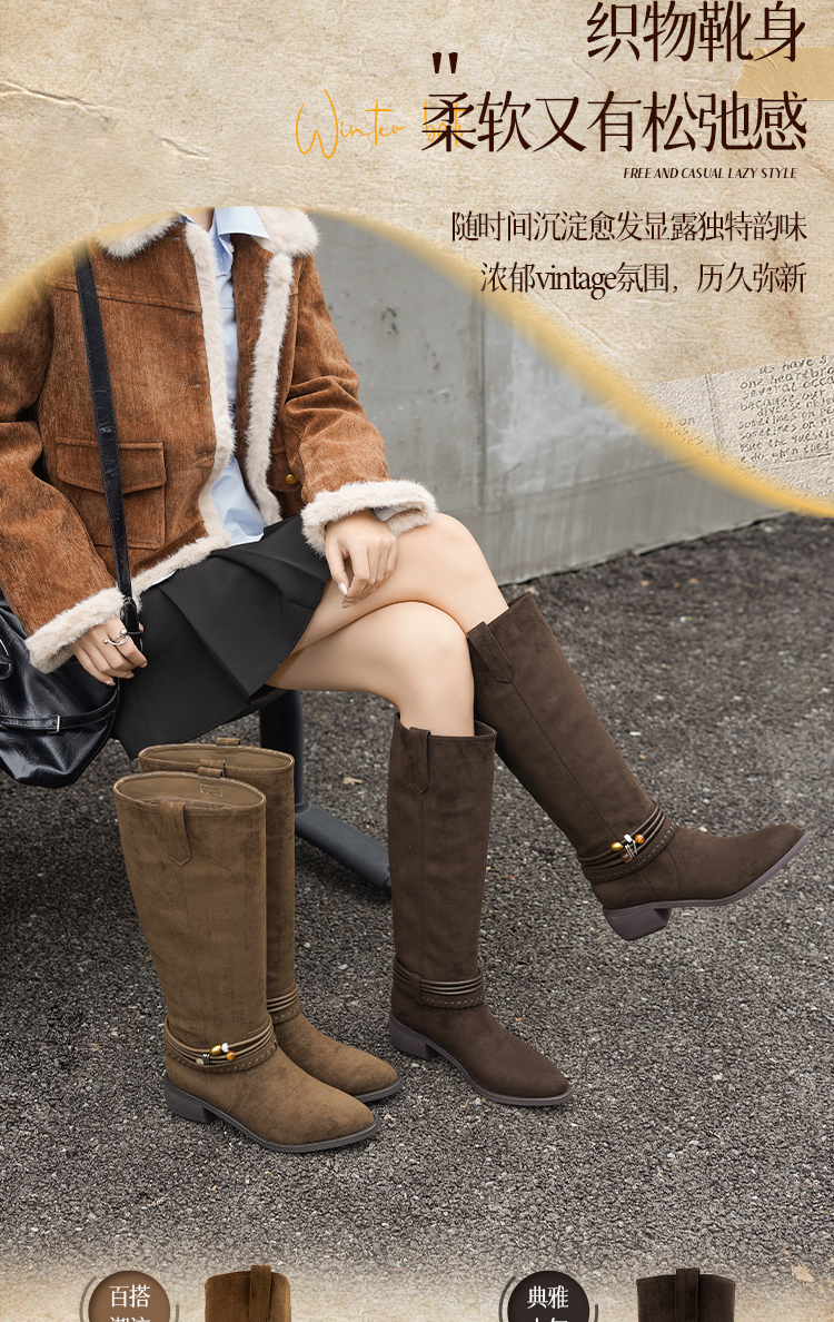 预售|Safiya/索菲娅2025波嬉风时尚通勤及膝尖头加绒复古高筒西部靴SFD4119M01