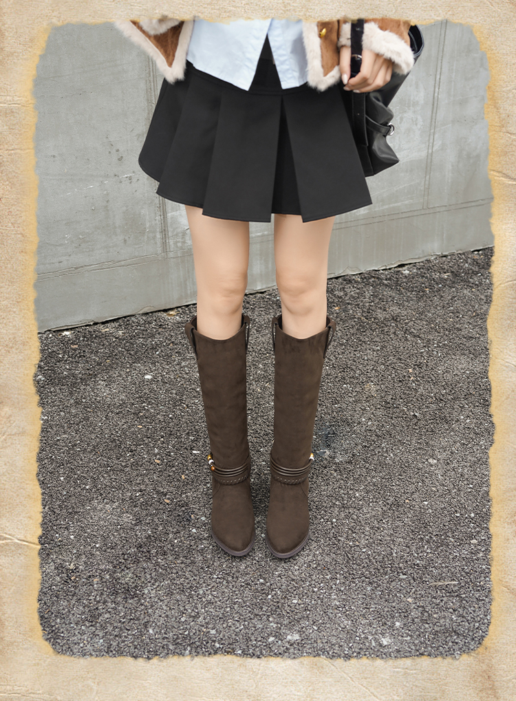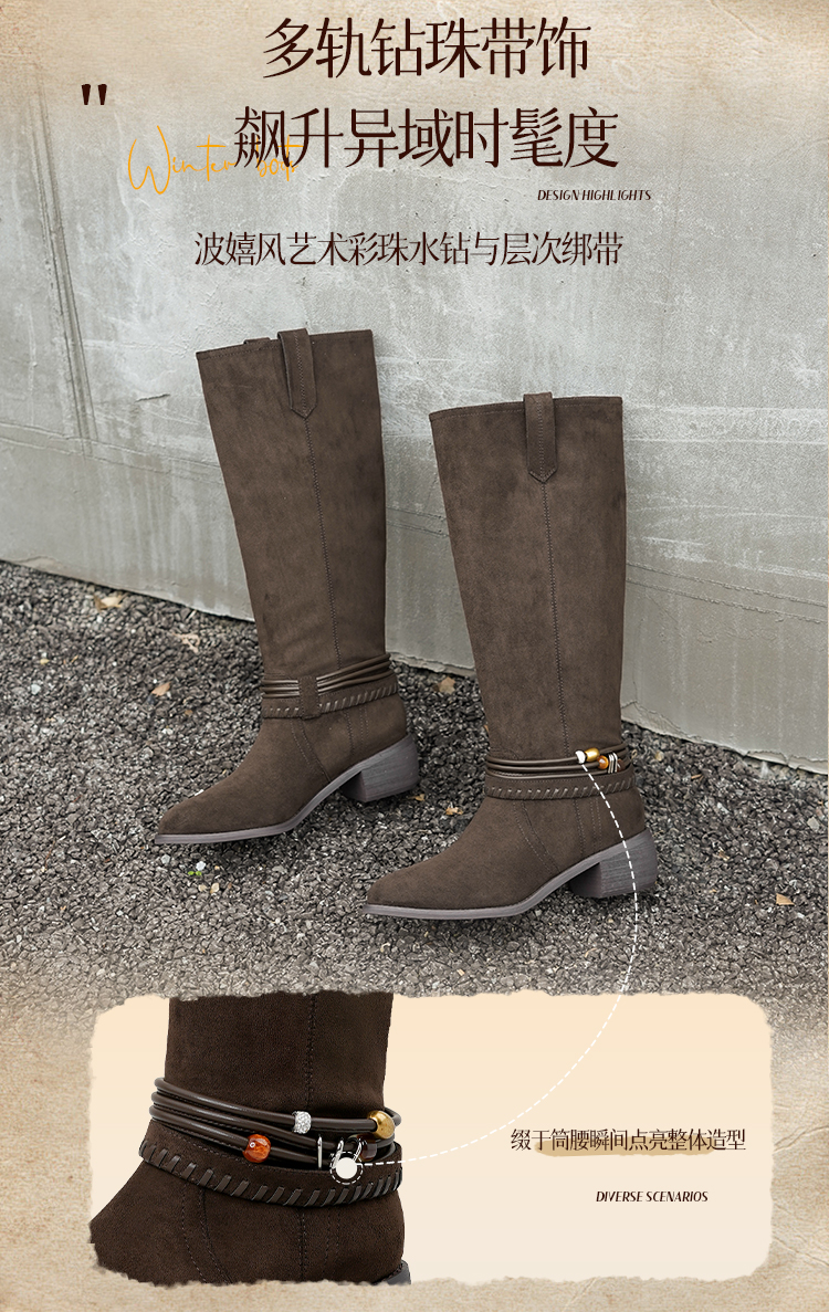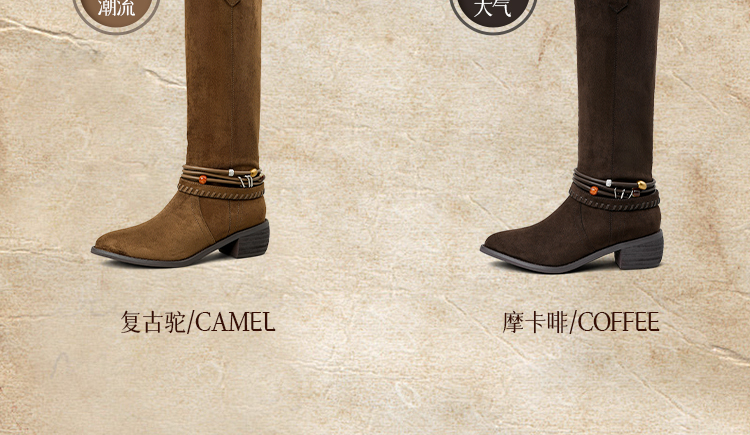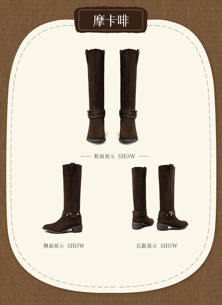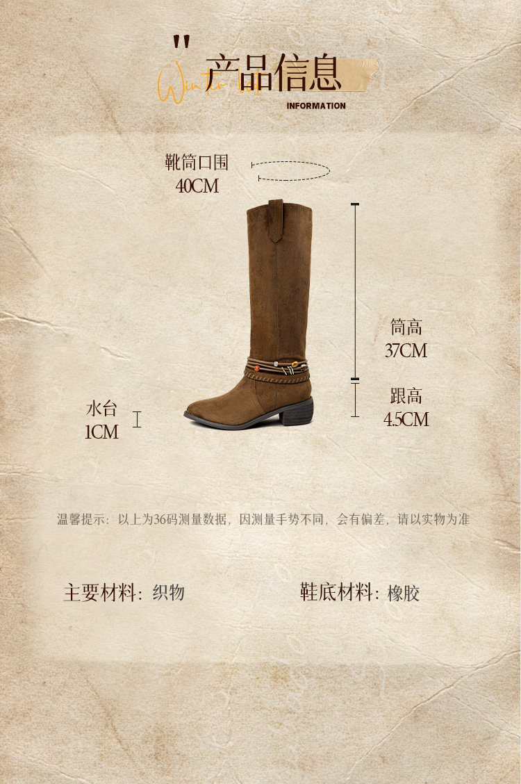 预售|Safiya/索菲娅2025波嬉风时尚通勤及膝尖头加绒复古高筒西部靴SFD4119M01