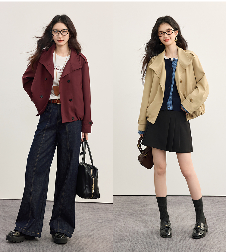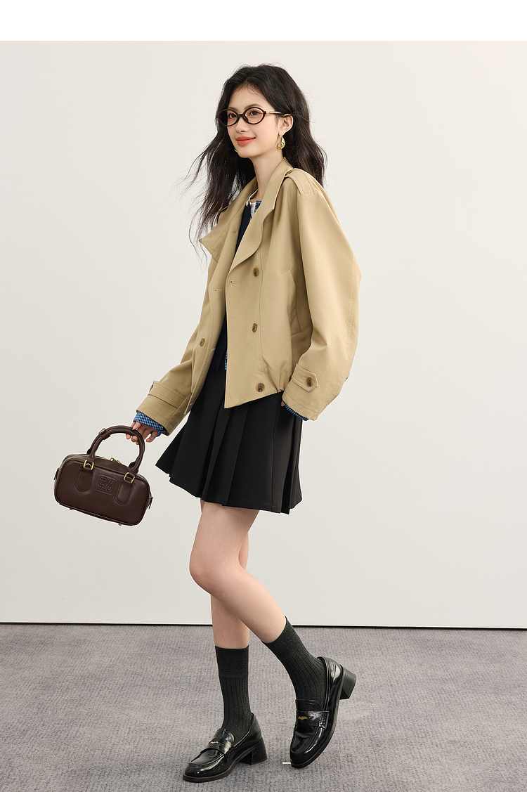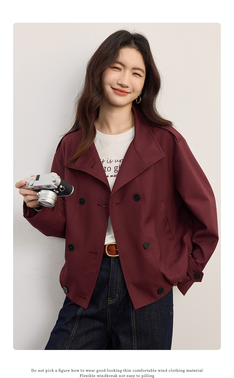 【09/03新品】熙世界智美翻领短款风衣外套2025秋季新款女装小个子复古夹克上衣