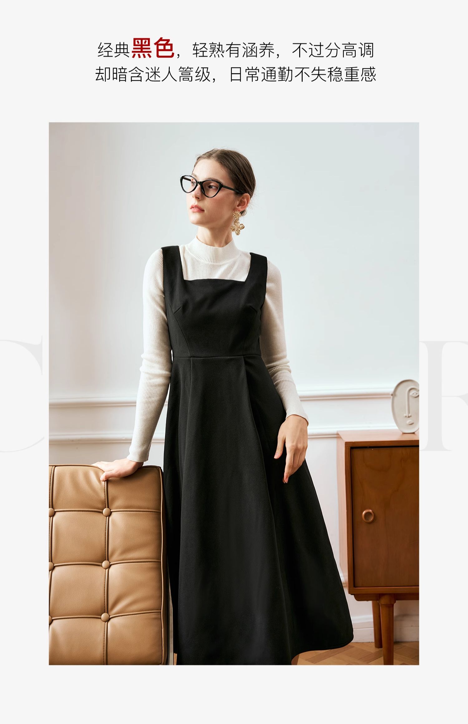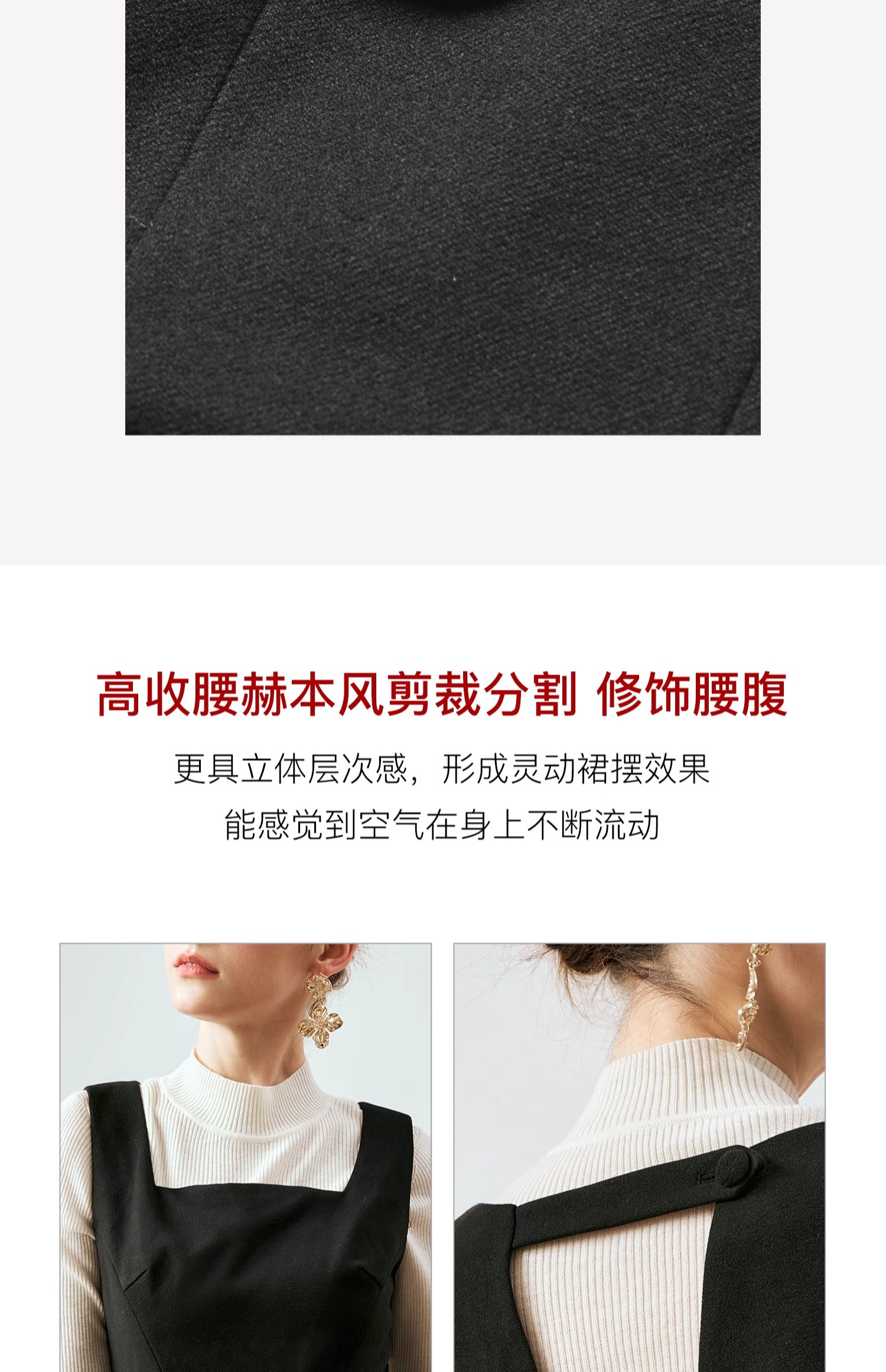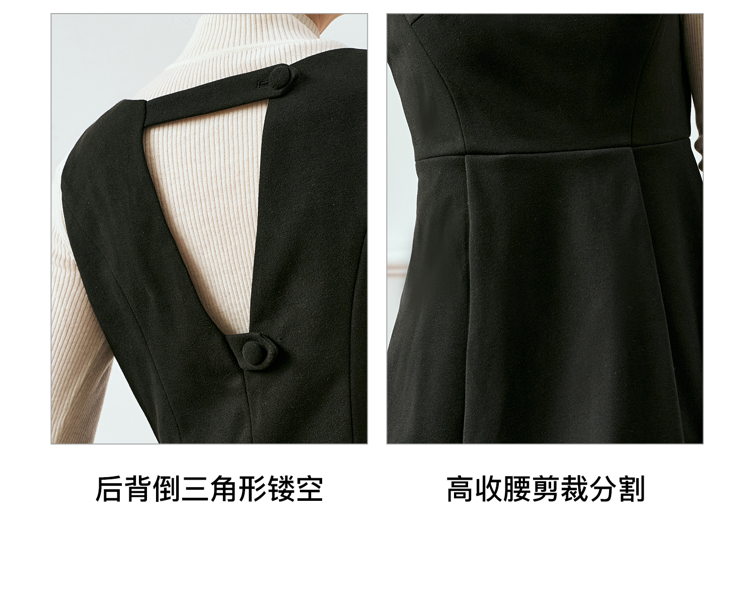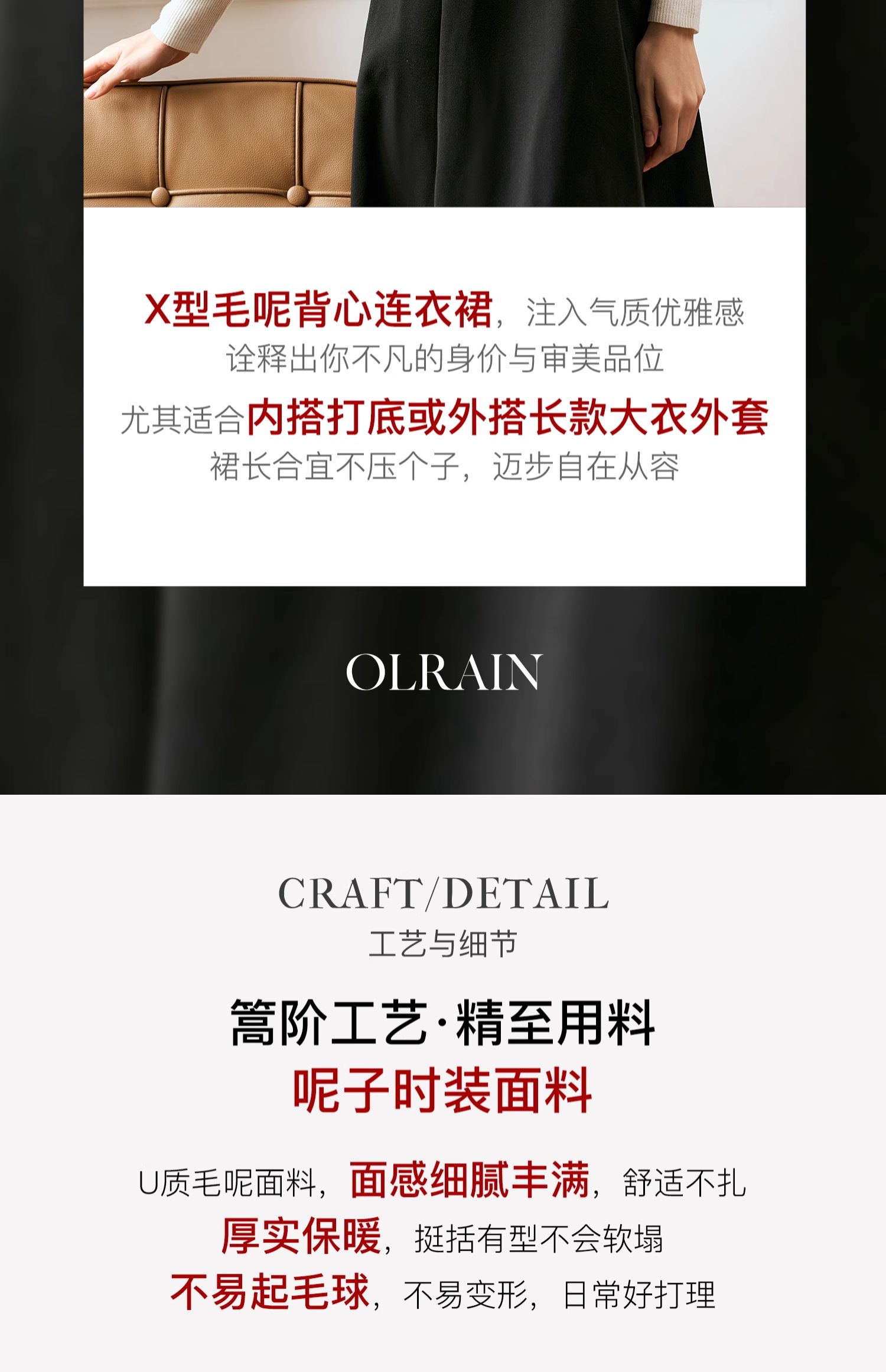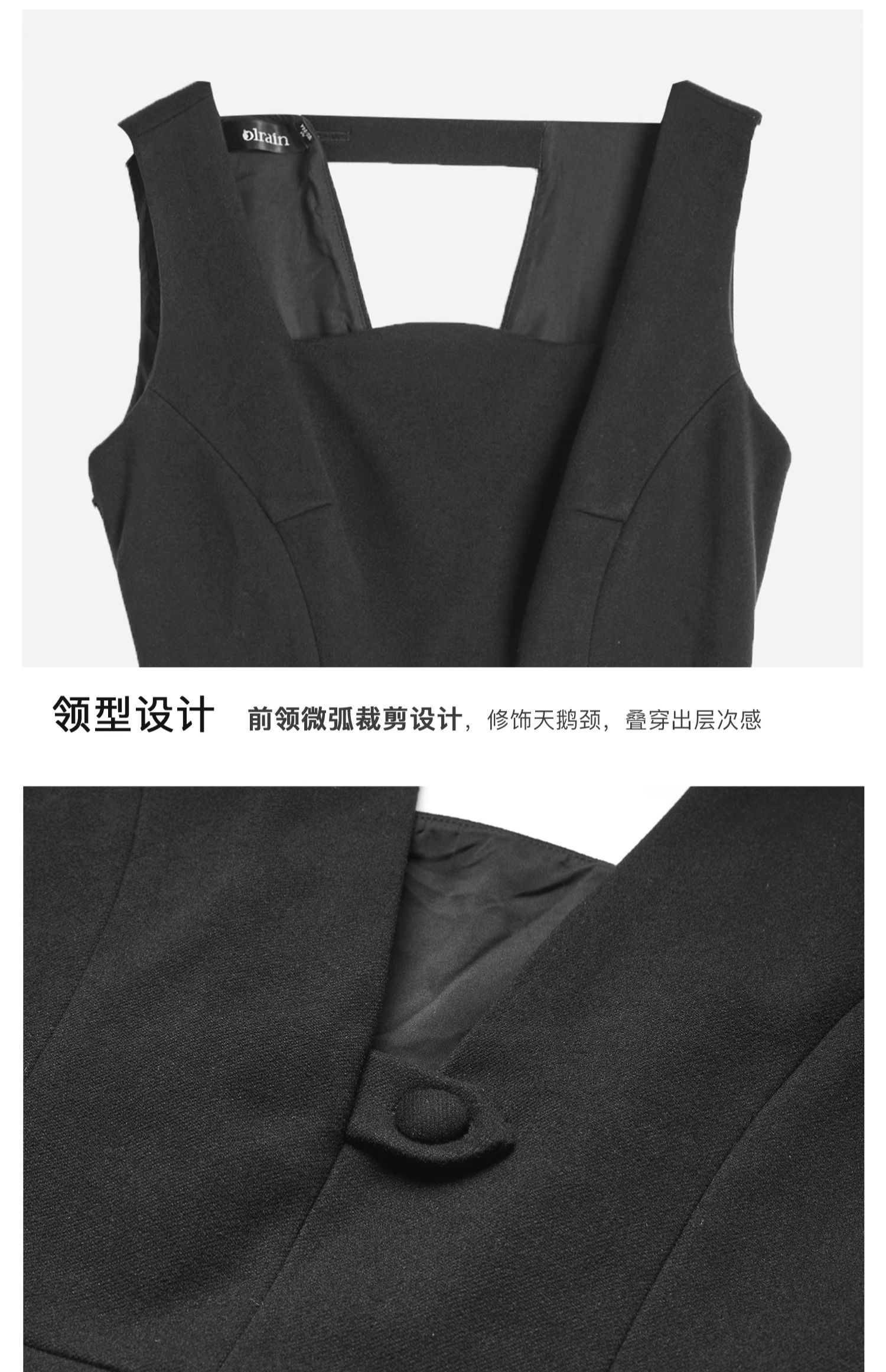 OLrain欧芮儿法式黑色连衣裙女秋季2024年新款赫本风毛呢背心裙