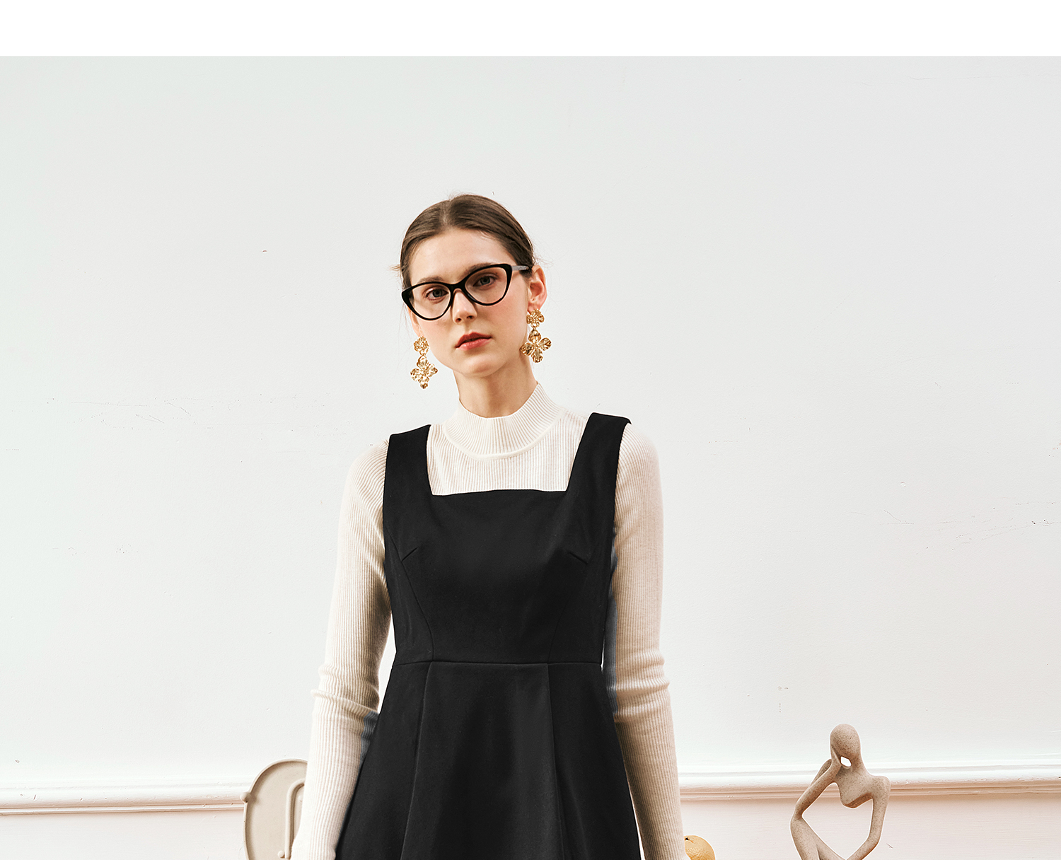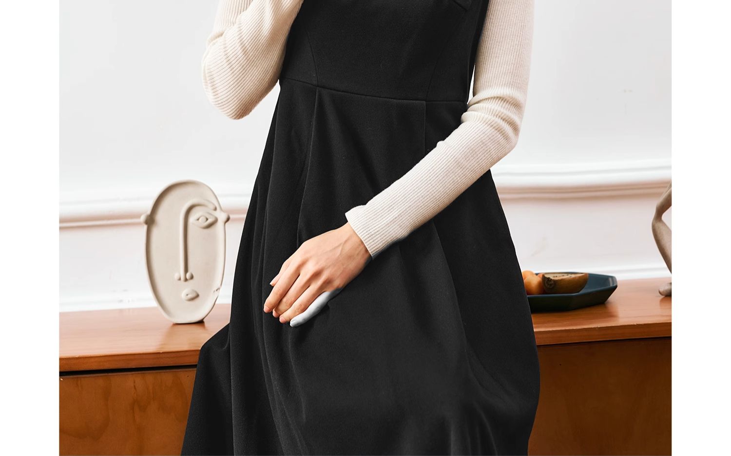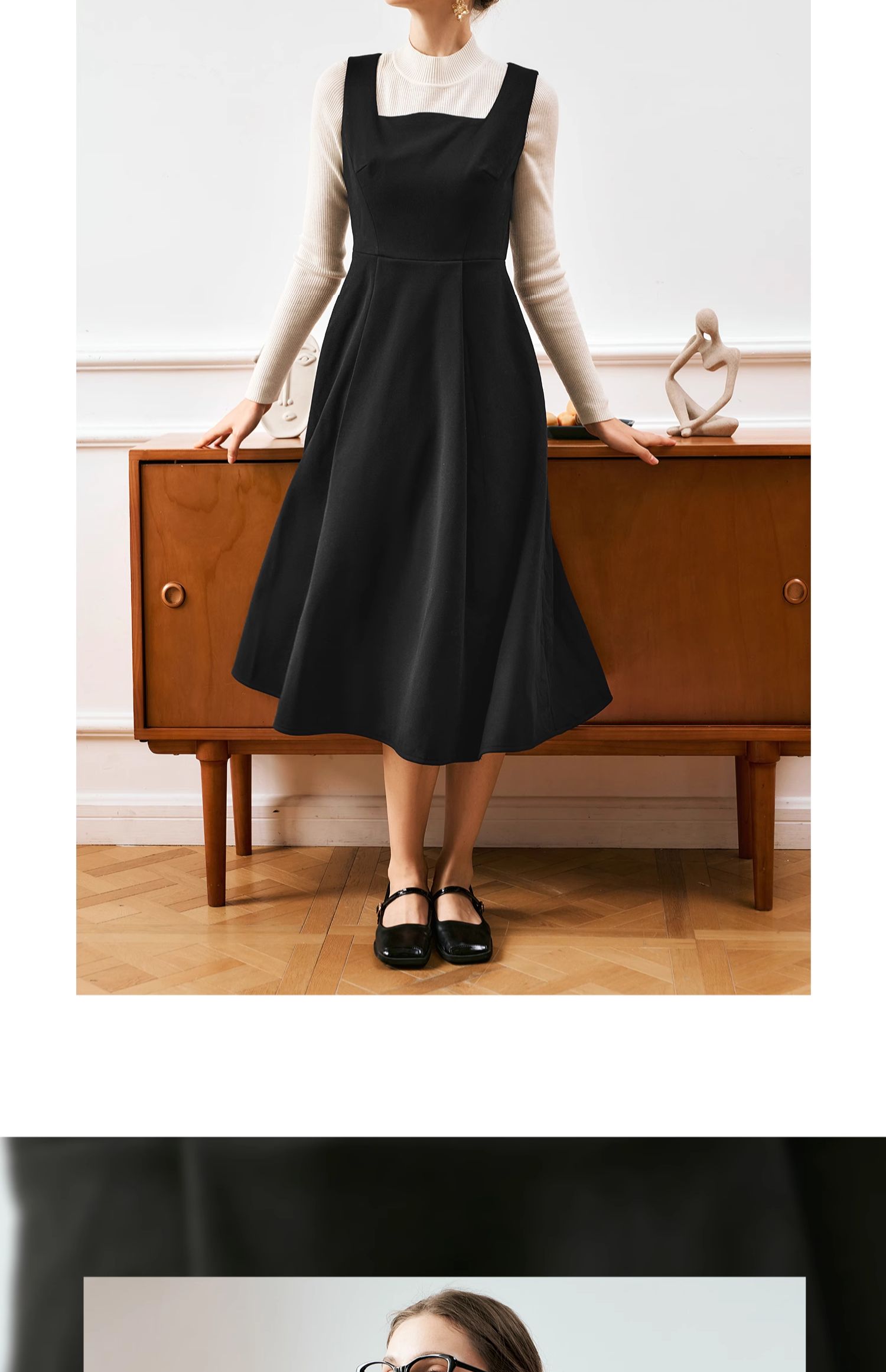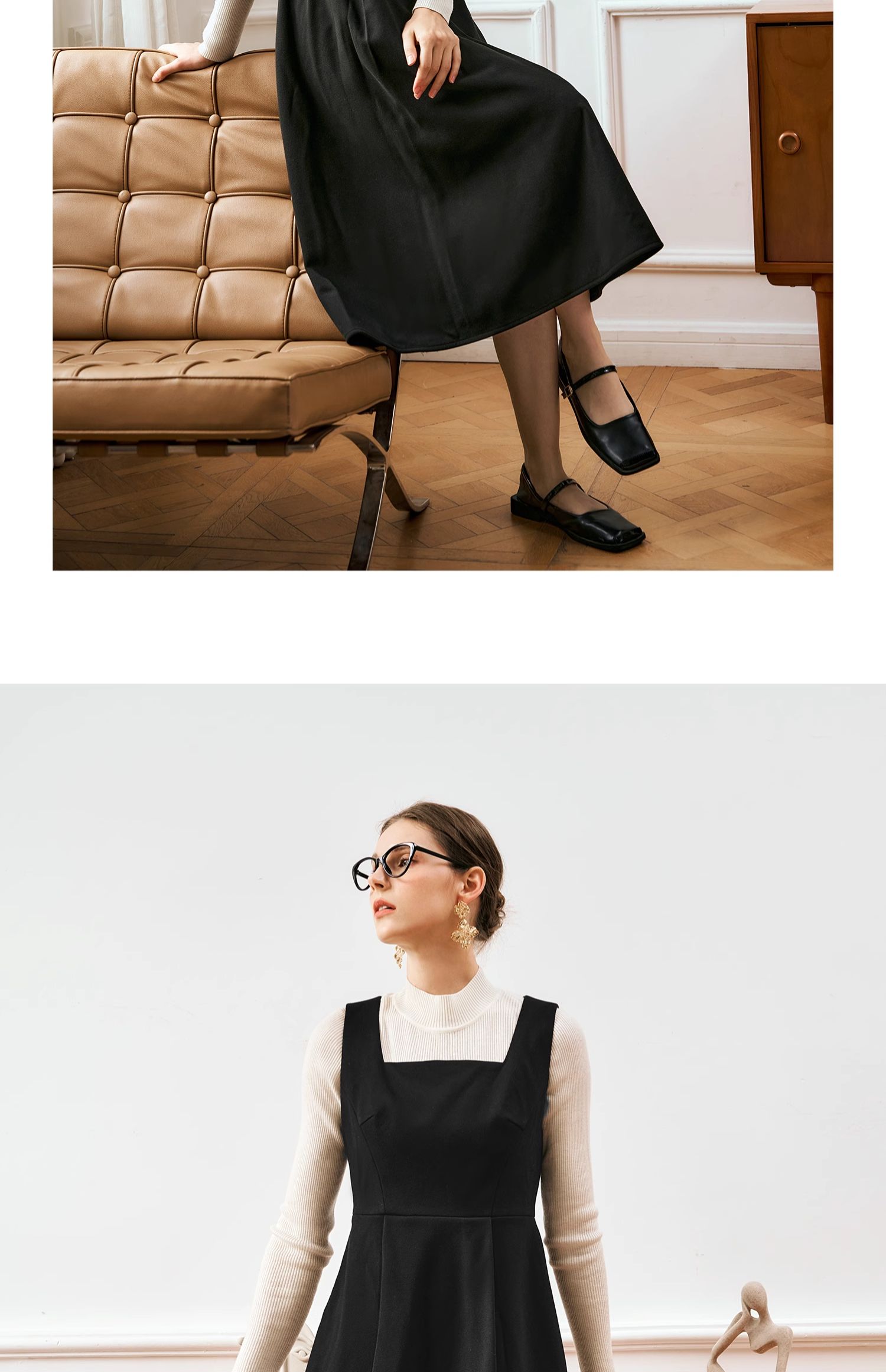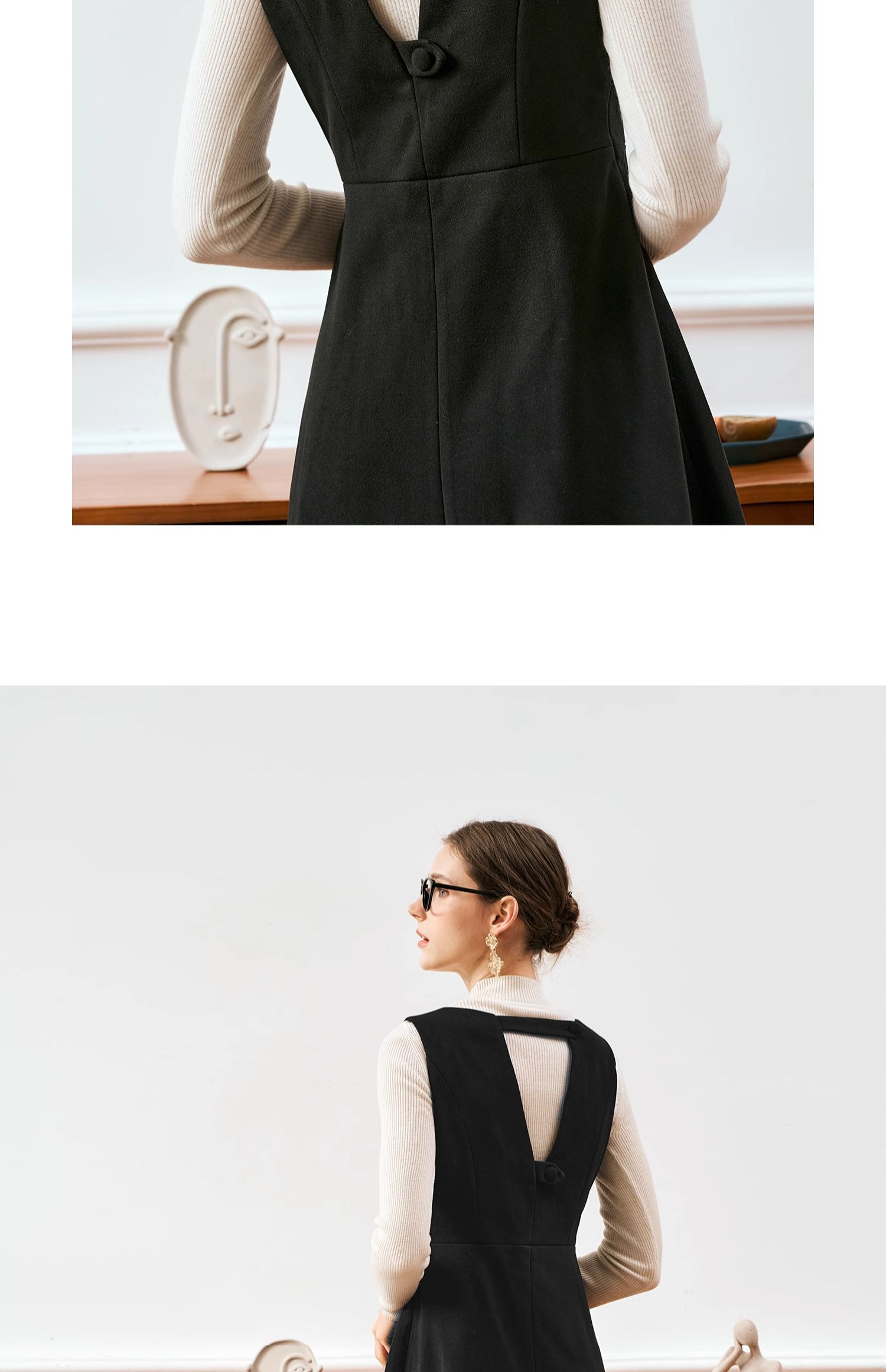 OLrain欧芮儿法式黑色连衣裙女秋季2024年新款赫本风毛呢背心裙