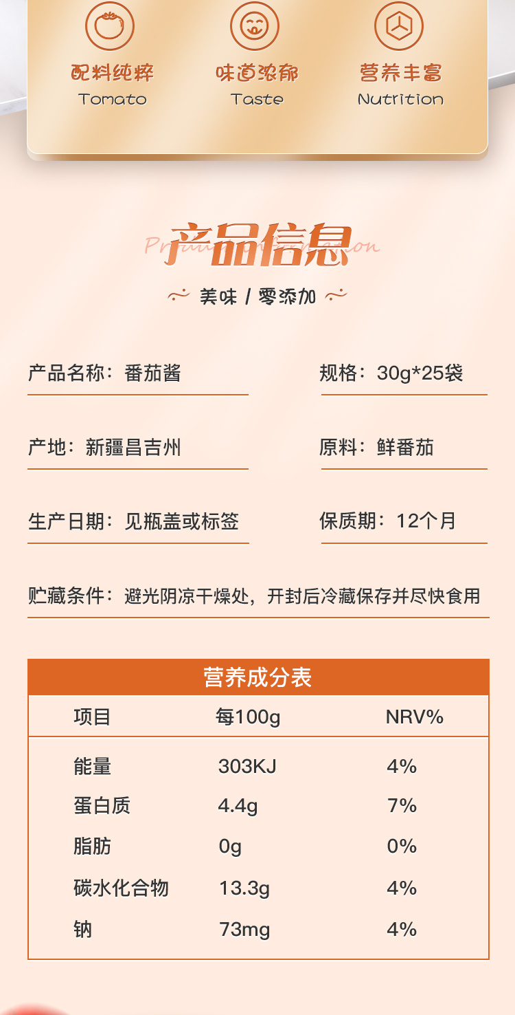 新疆笑厨纯番茄酱30g*25袋做饭伴侣汤饭大盘鸡炒米粉拌面菜