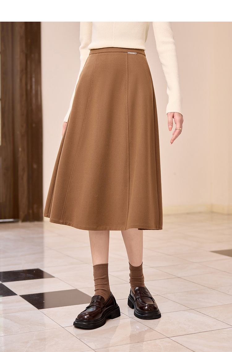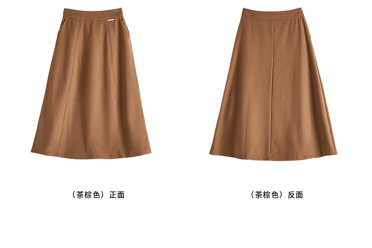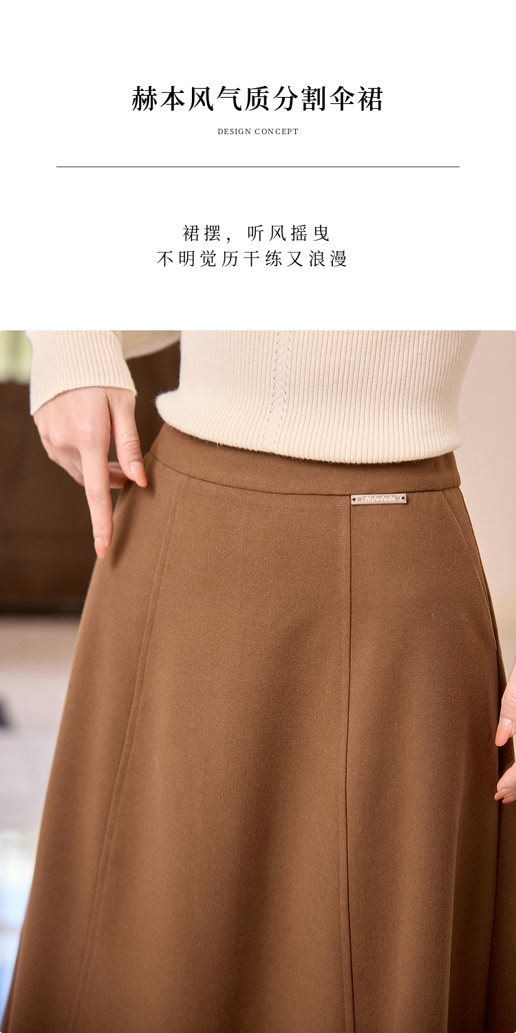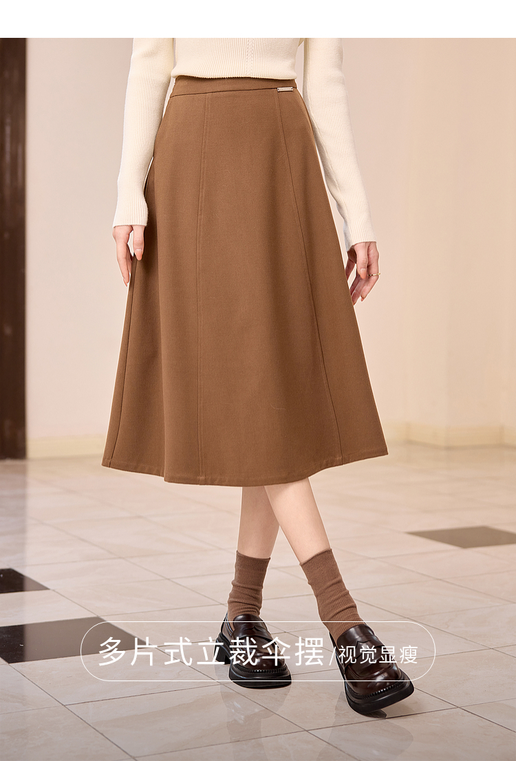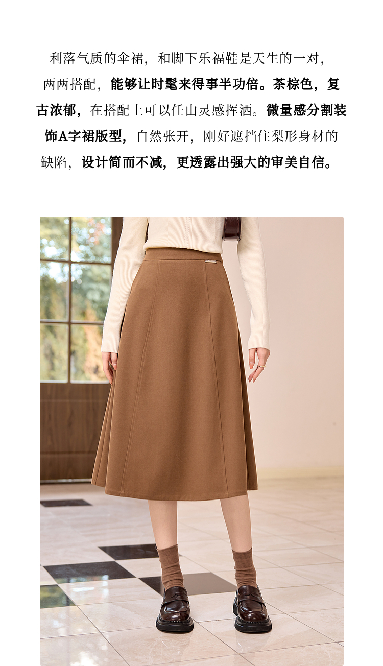 【年终特卖】熙世界赫本风棕色毛呢半身裙秋冬新款气质通勤磨毛中长a字伞裙