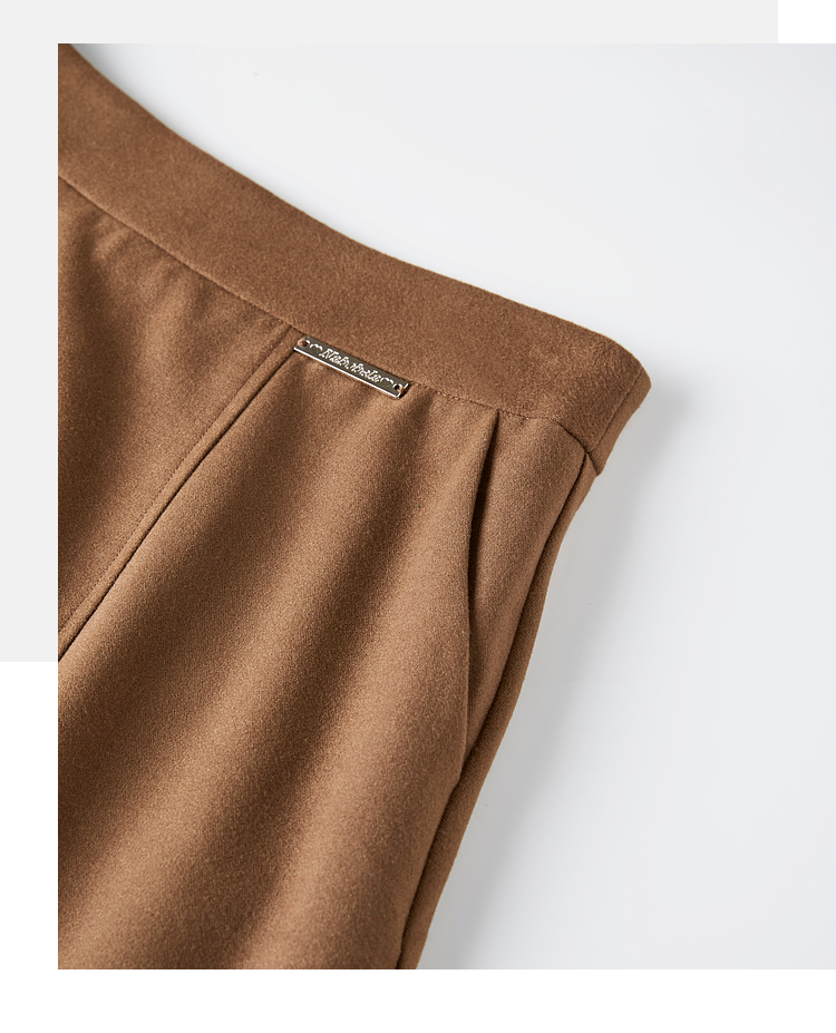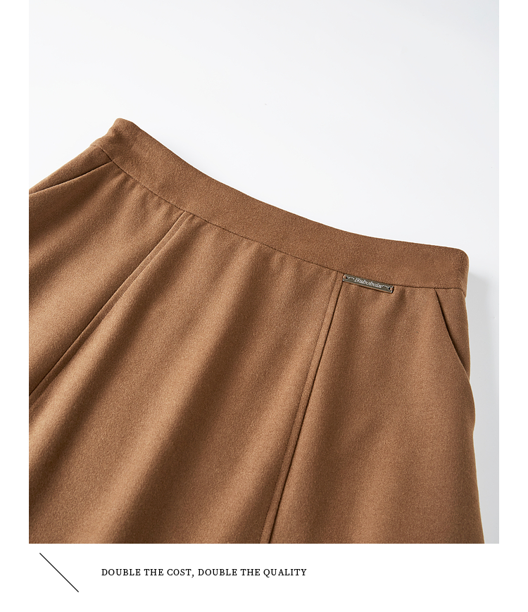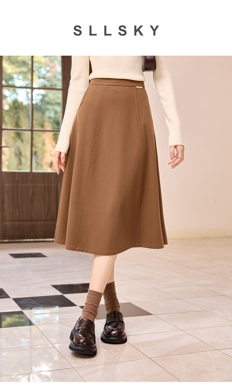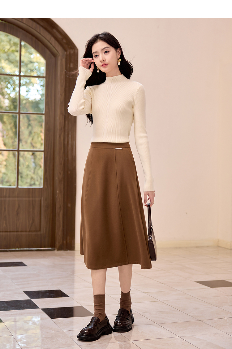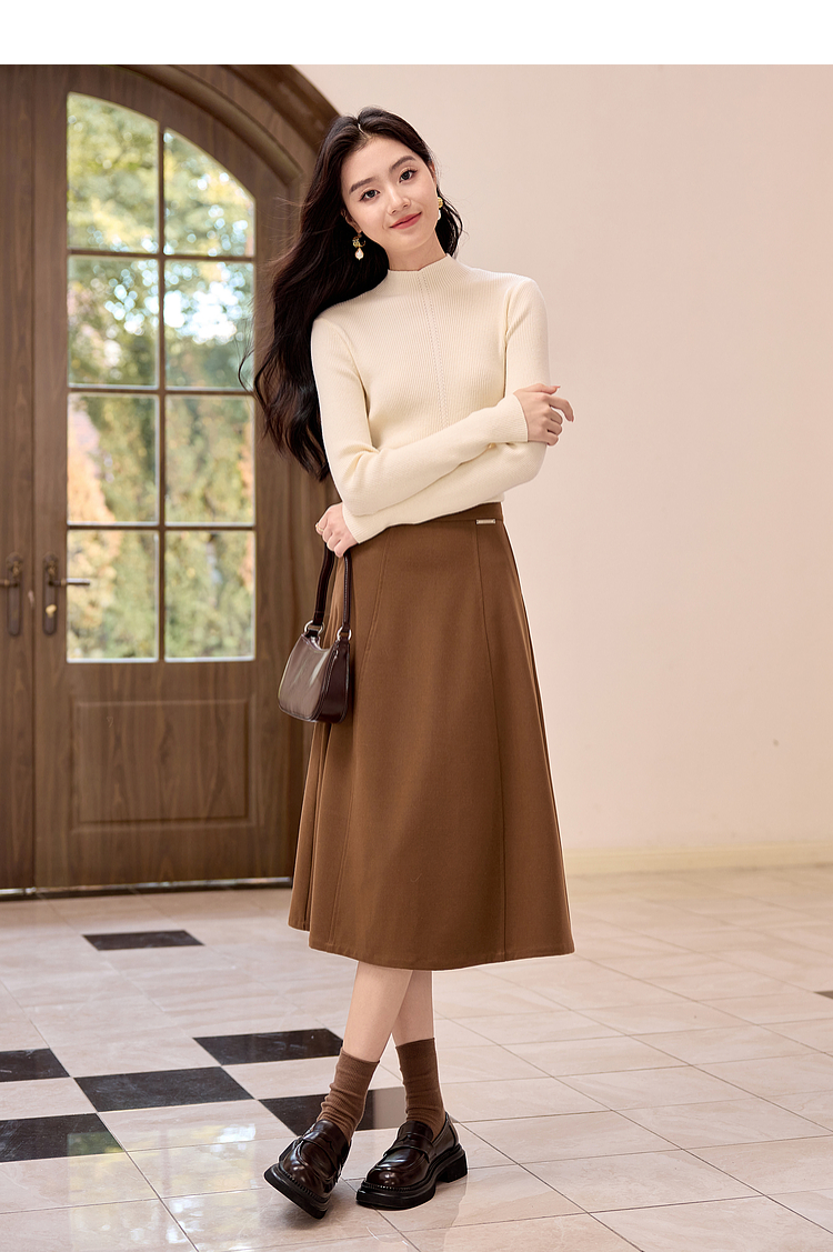【年终特卖】熙世界赫本风棕色毛呢半身裙秋冬新款气质通勤磨毛中长a字伞裙