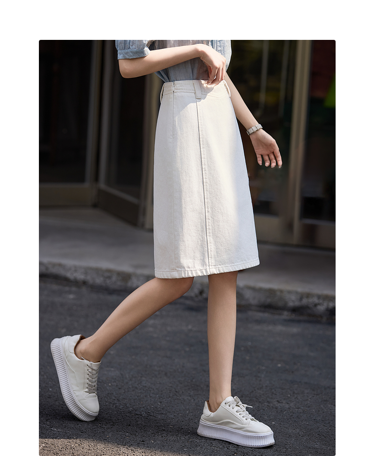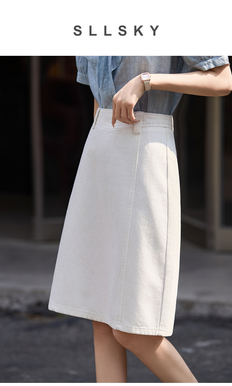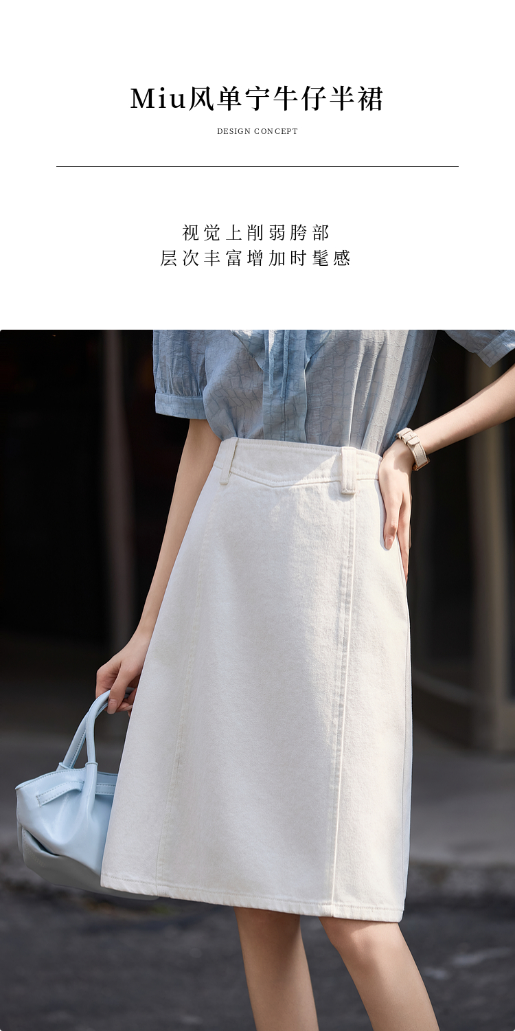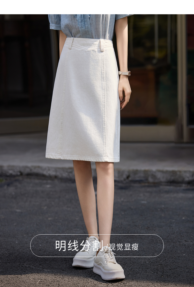 熙世界纯棉白色牛仔半身裙女2025夏季新款小个子显瘦a字直筒中裙