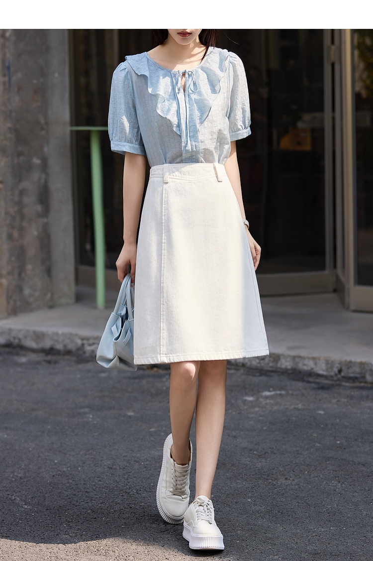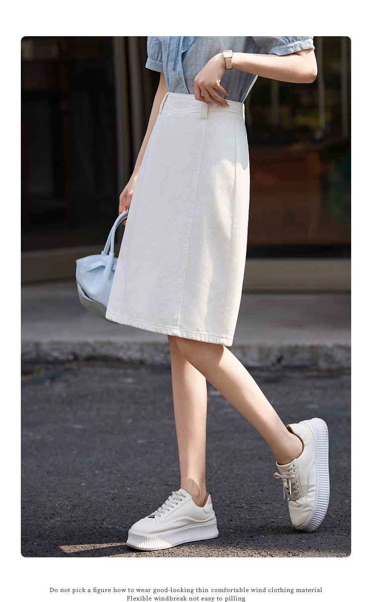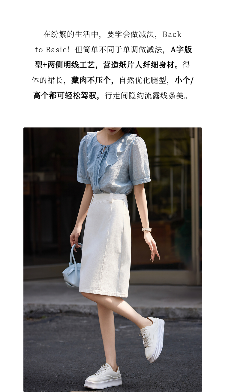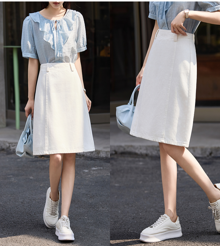 熙世界纯棉白色牛仔半身裙女2025夏季新款小个子显瘦a字直筒中裙