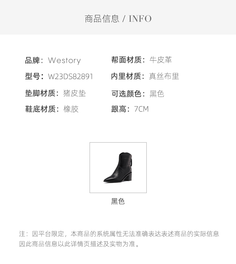 westory2023秋冬季新品复古牛仔风马丁靴粗跟尖头西部靴子W23DS82891