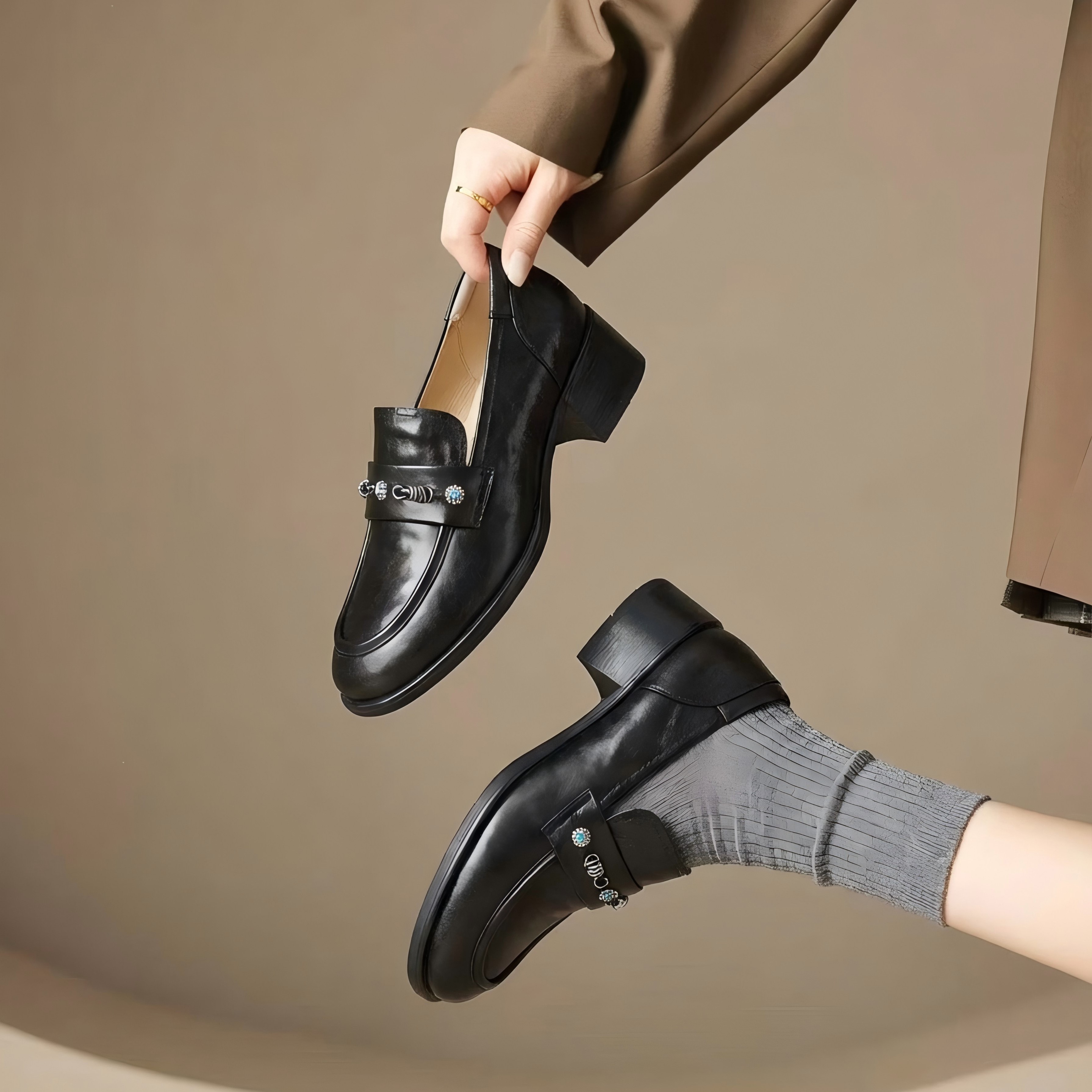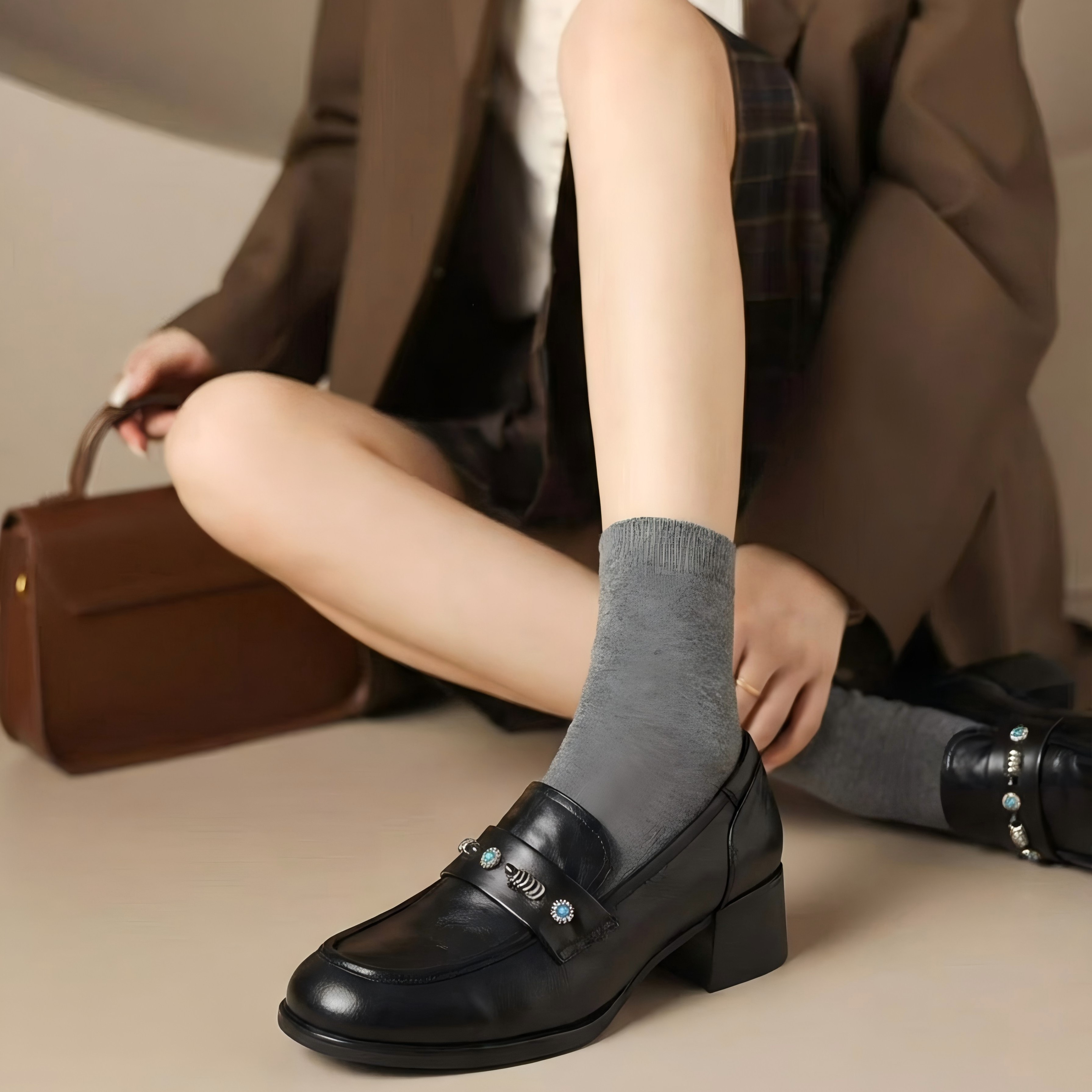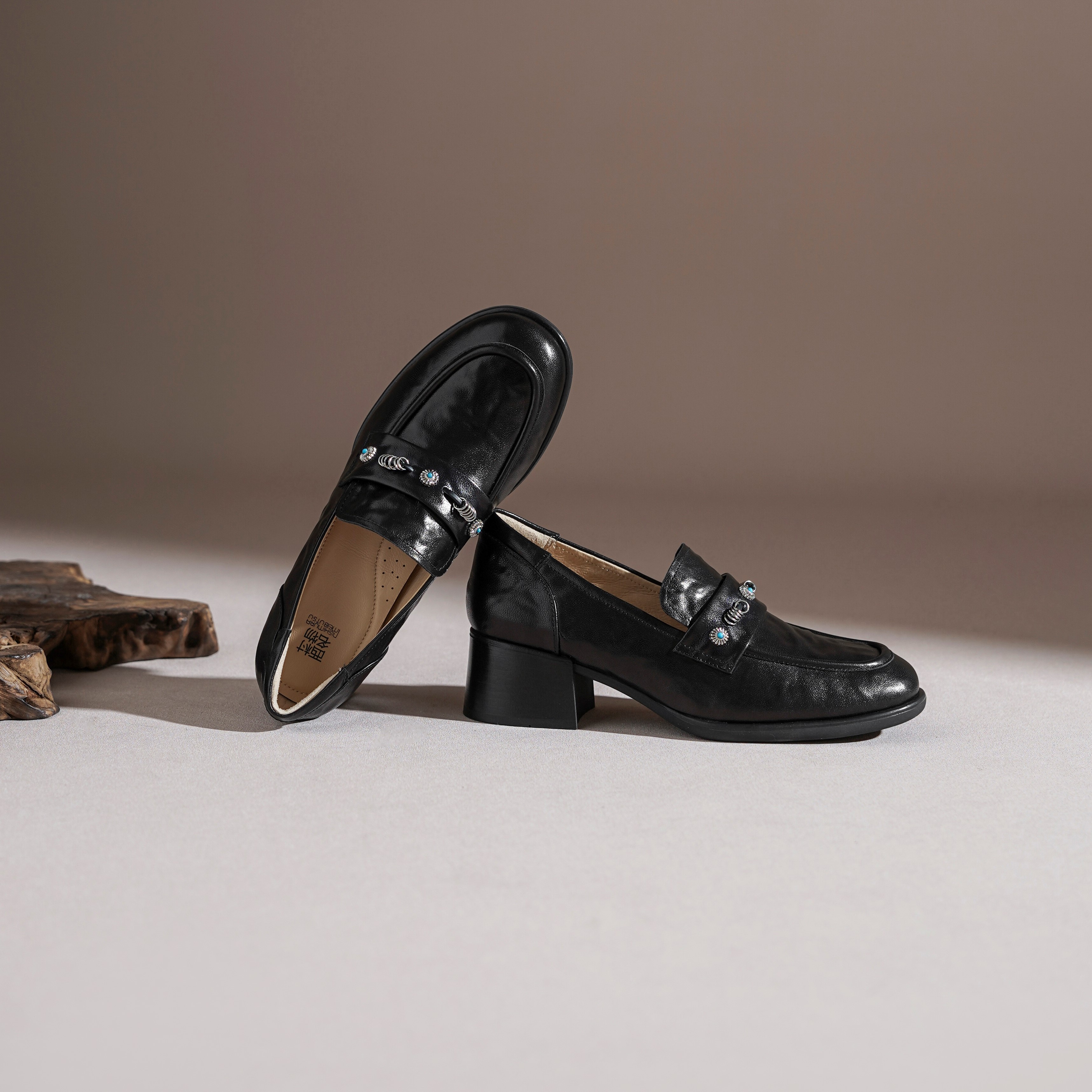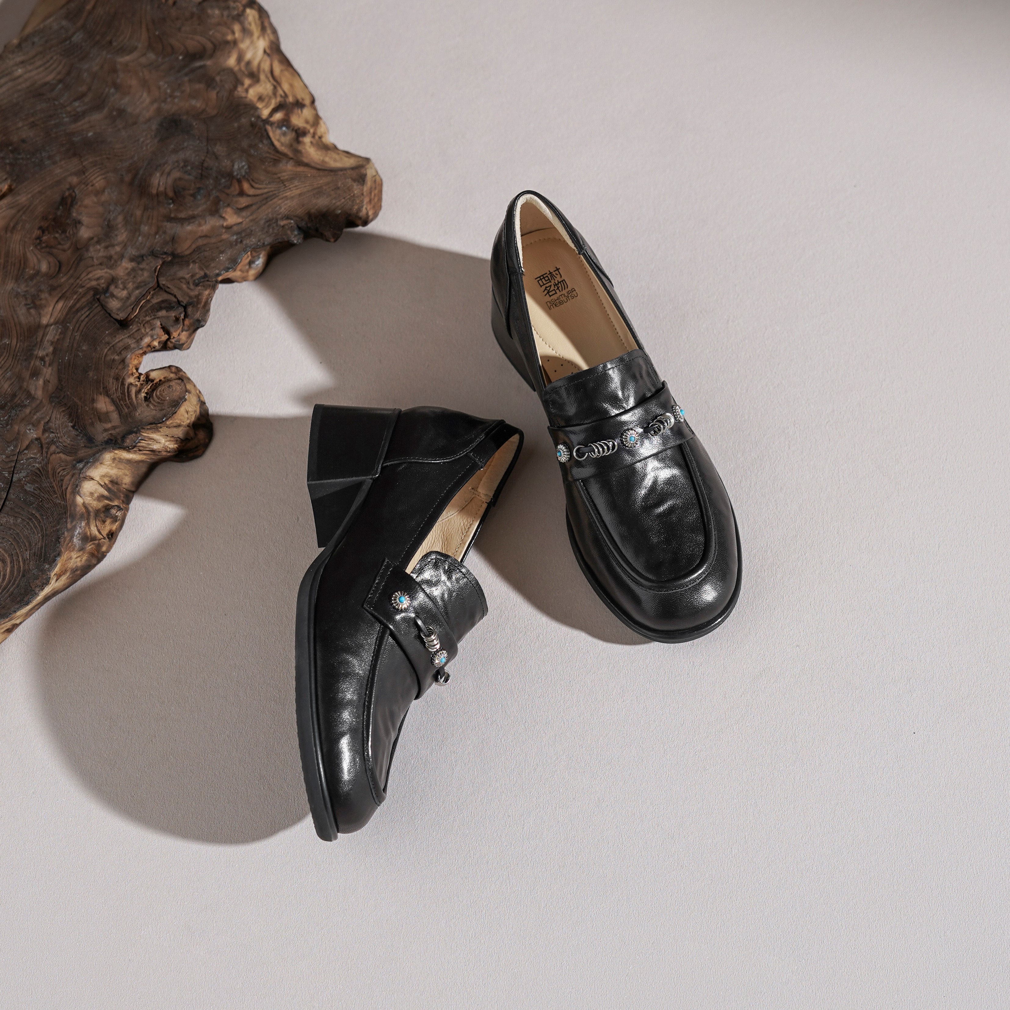 【羊皮革】西村名物2026年春季新款舒适厚底粗跟原皮深口单鞋乐福鞋T26AM17961