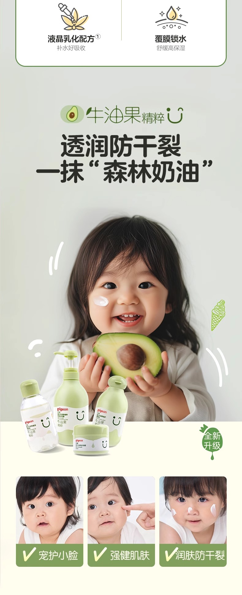 贝亲牛油果洗发沐浴露泡泡浴二合一乳霜面霜宝宝婴儿润肤乳抚触油/PIG-IA296