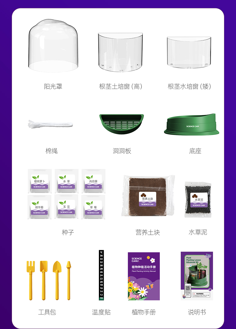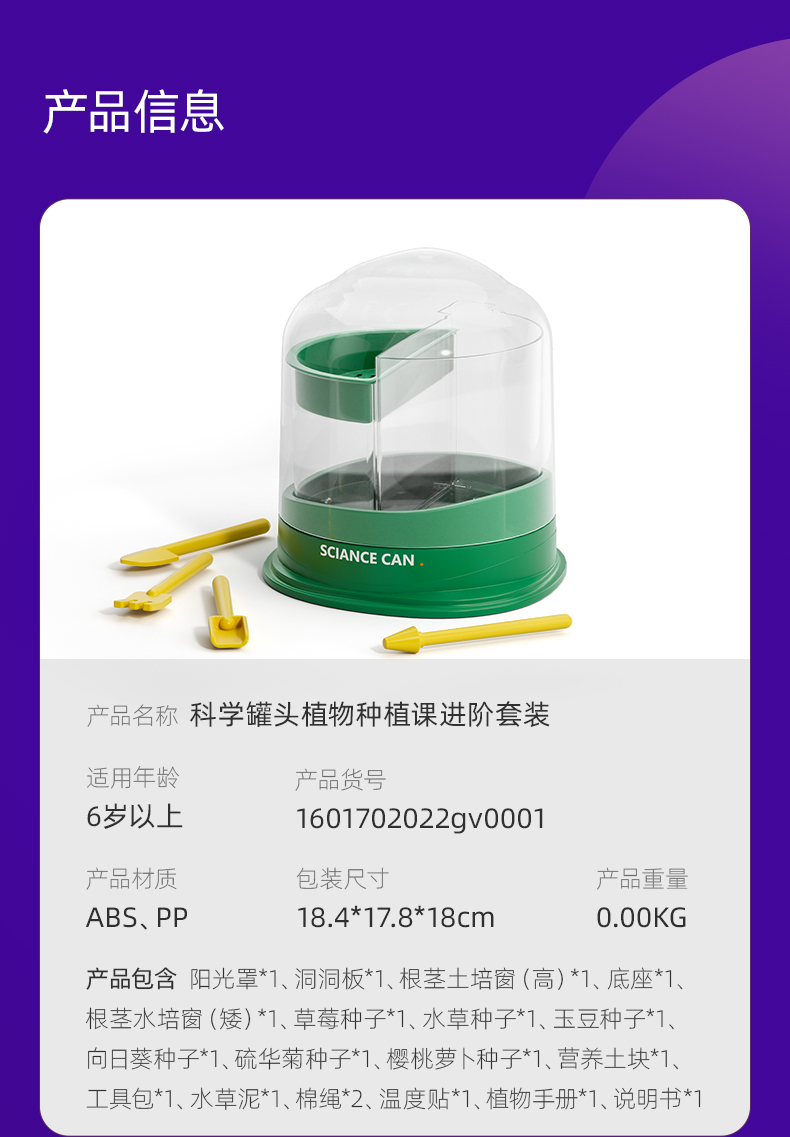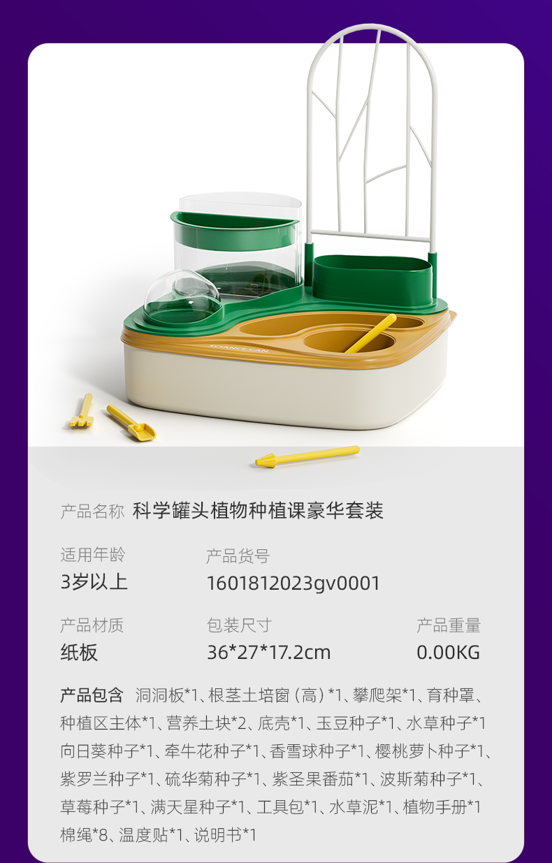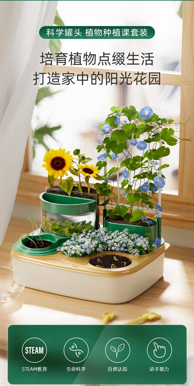 科学罐头植物种植课套装儿童植物生长观察盒幼儿园小学科学小实验套装种菜玩具