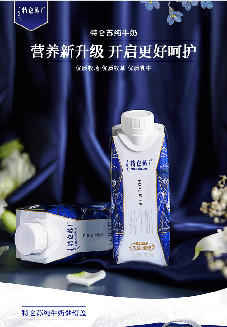 T特仑苏纯牛奶全脂灭菌乳利乐梦幻盖250ml×10包(3.8g乳蛋白)