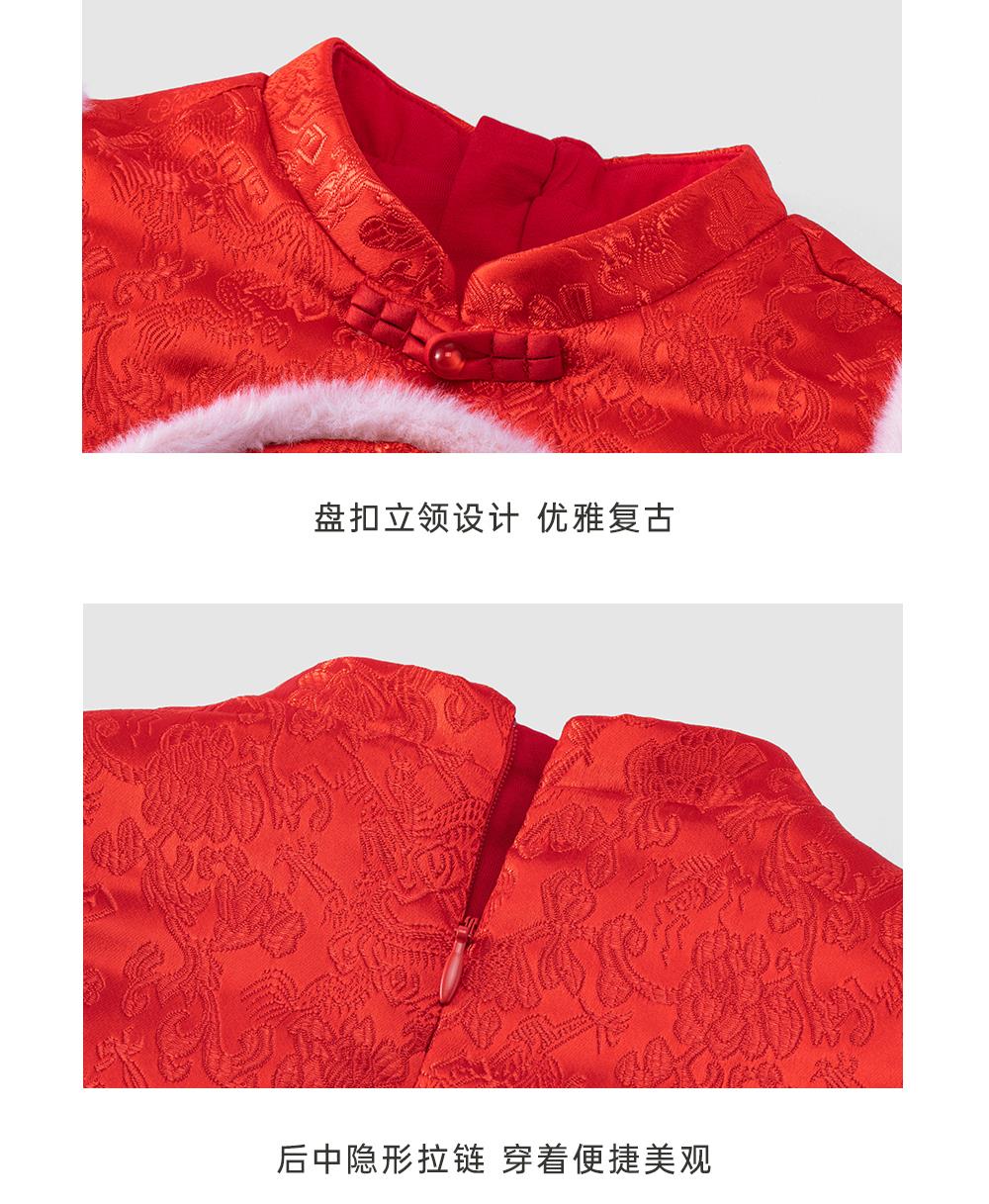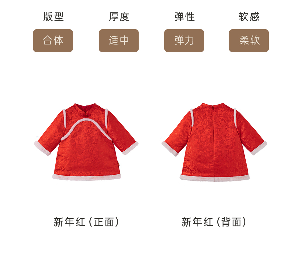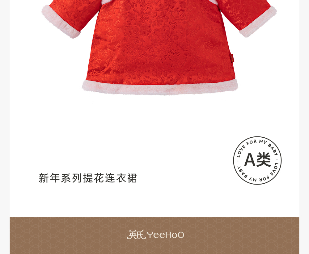英氏-童衣类(冬)G3新梭长袖连衣裙新年红100CM