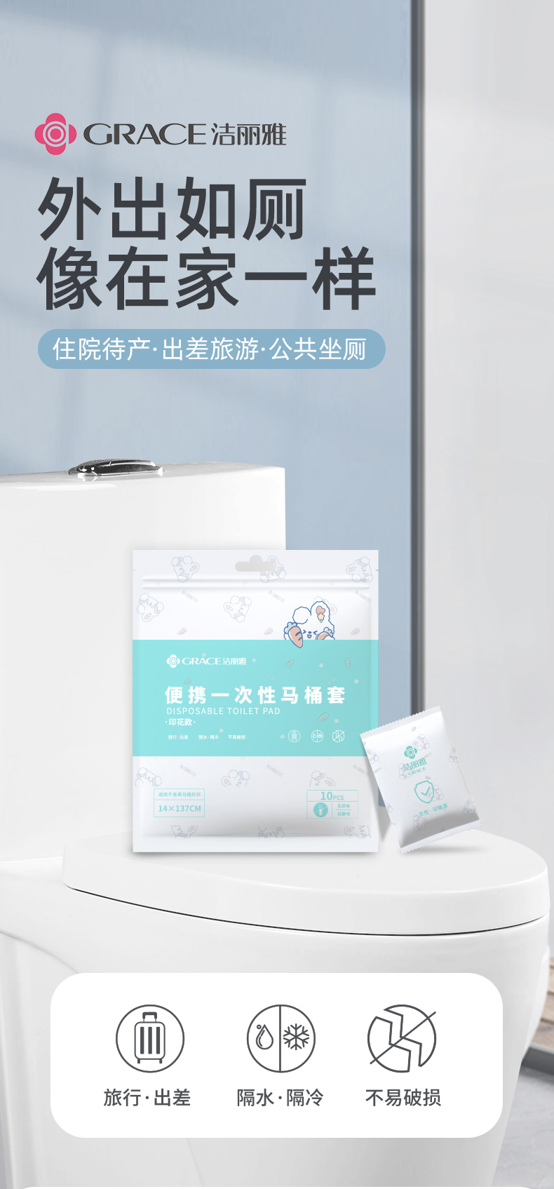洁丽雅一次性防水马桶套垫印花旅行便携酒店产妇厕所无纺布坐垫纸