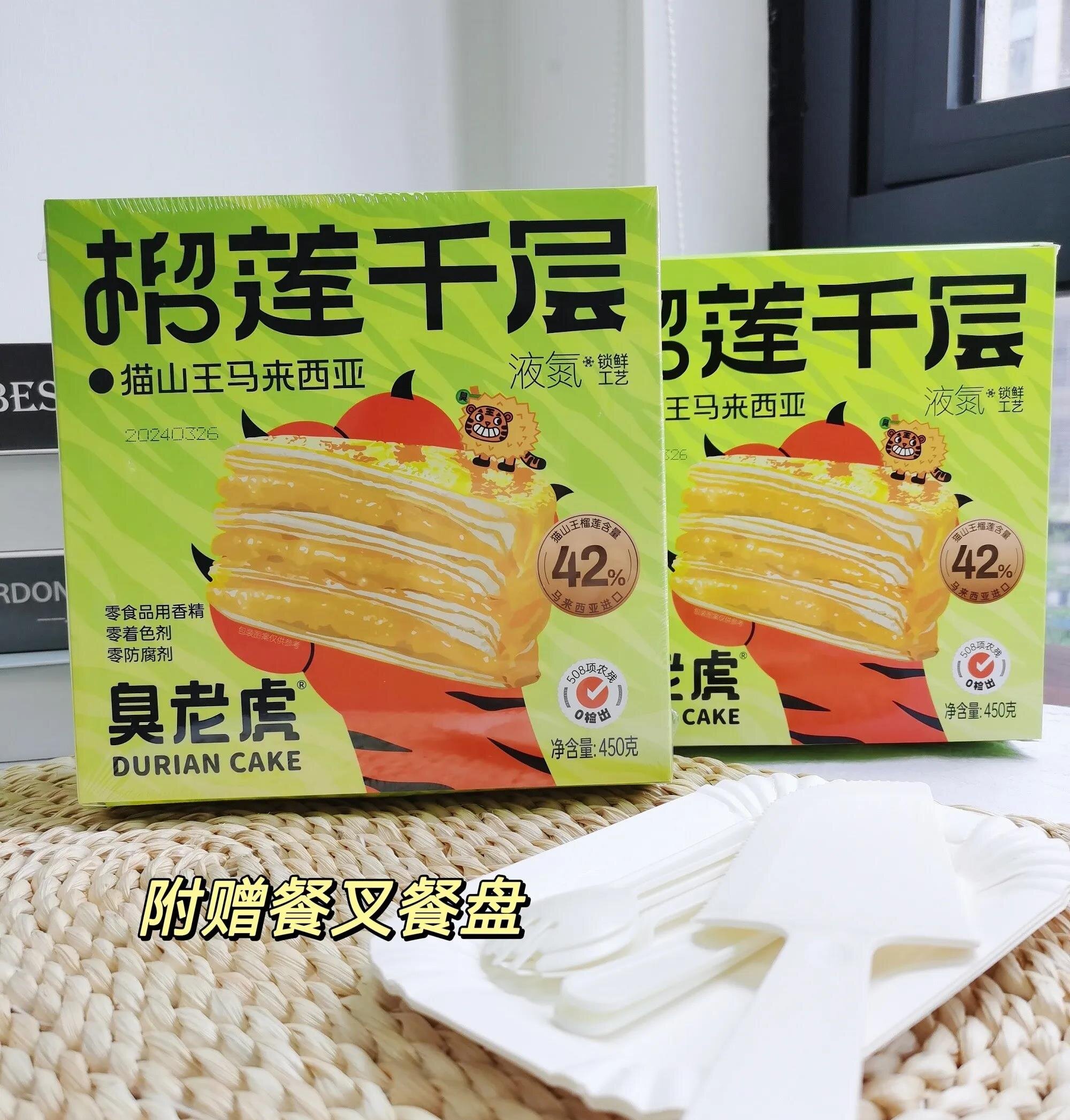 【臭老虎猫山王虎皮榴莲千层】🥞榴莲千层天花板,看得见的榴莲果肉,一口下去超满足,榴莲脑袋们千万不要错过哦~