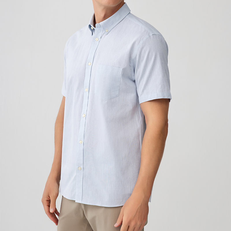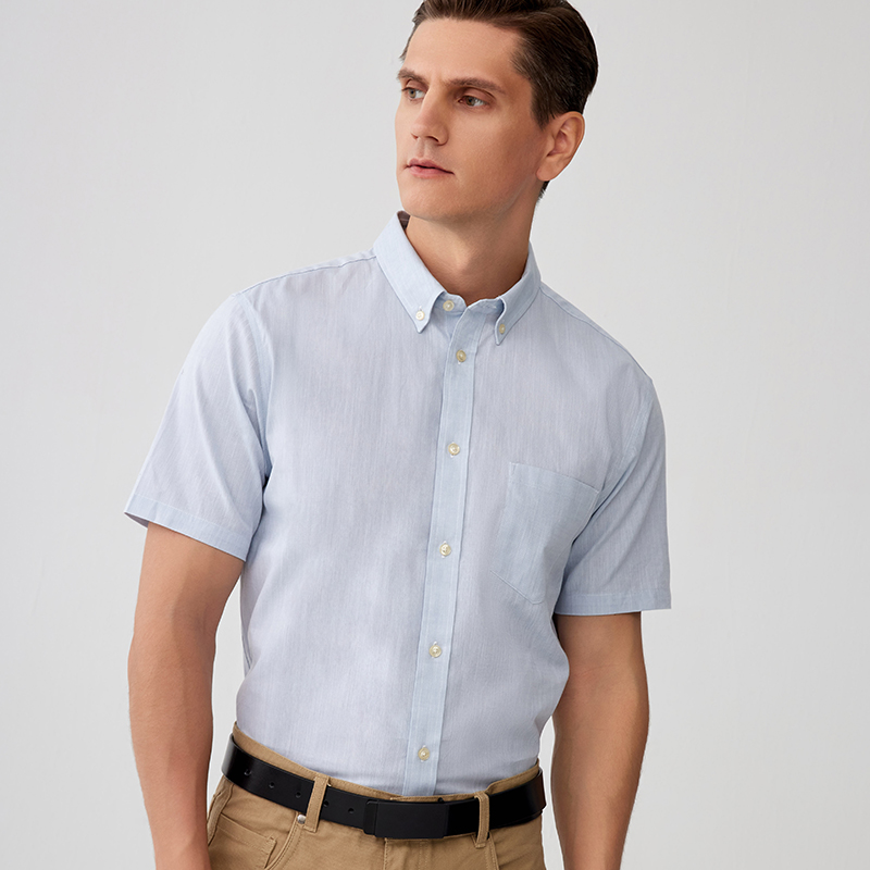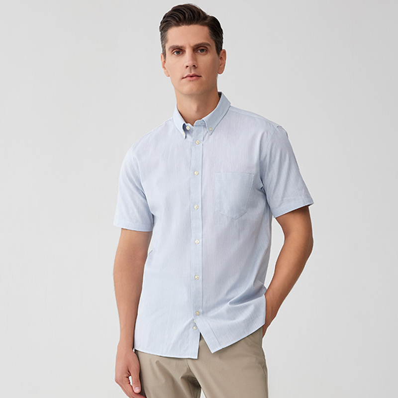 【纯棉短袖衬衫】23年夏季新品男士100%棉纯色薄款商务休闲上衣