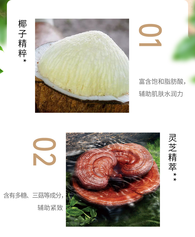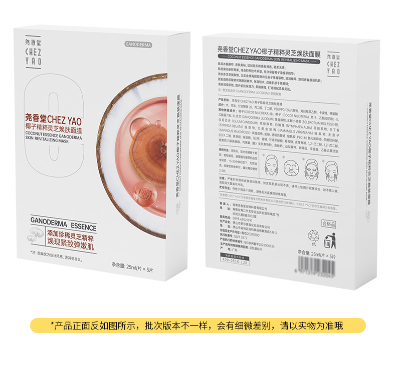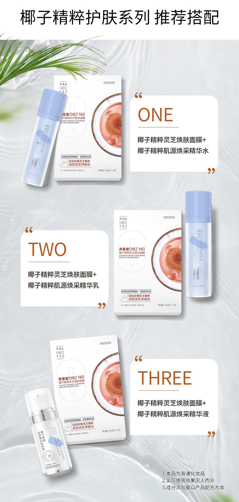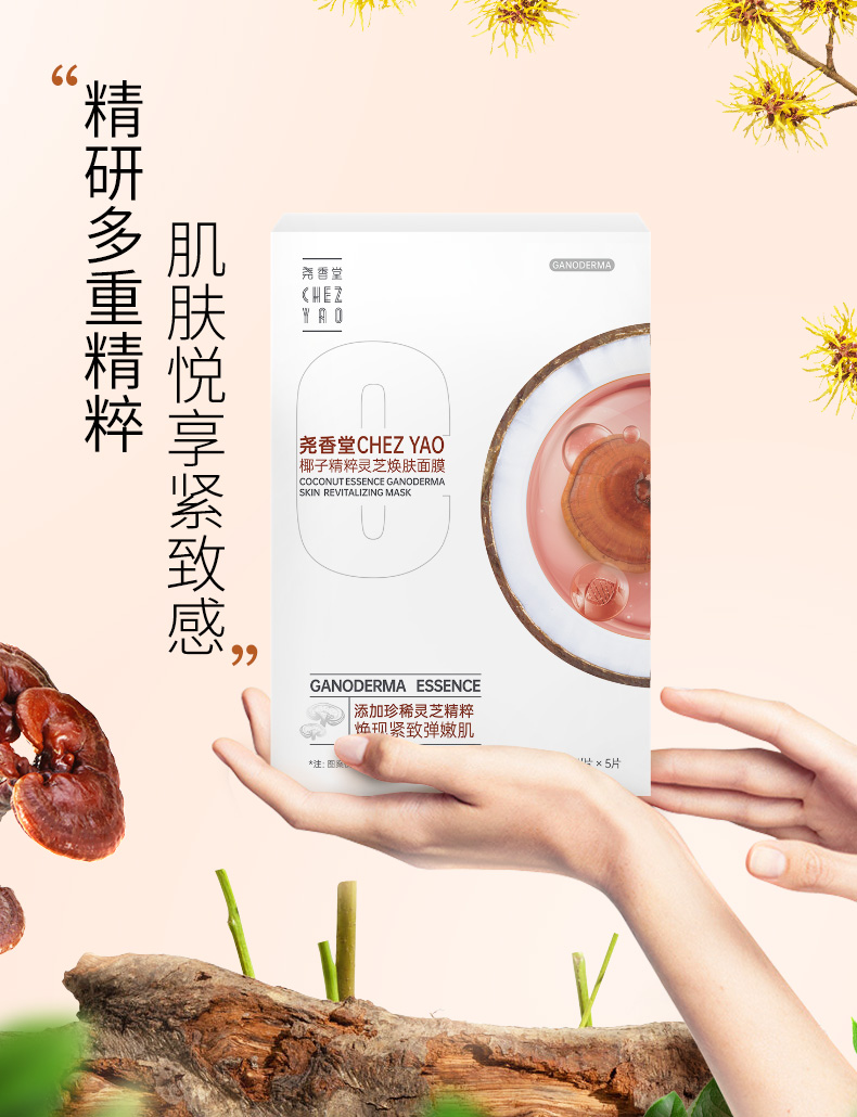 【买2送1,数量拍3】尧香堂椰子精粹灵芝焕肤面膜紧致肌肤补水保湿滋润面膜25ml*5片