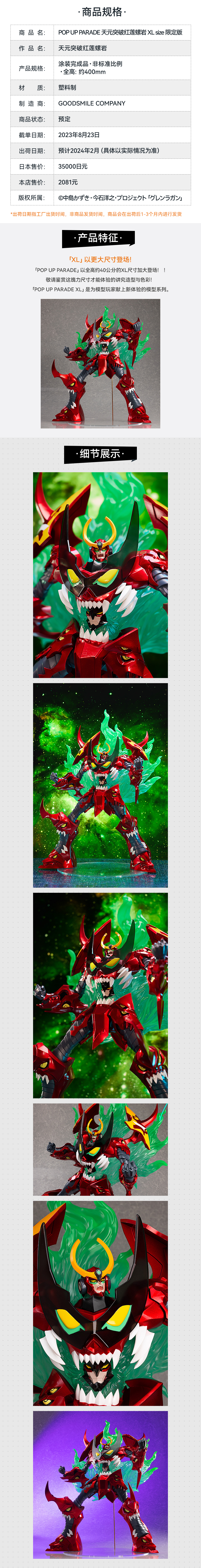 【GSC现货】POP UP PARADE 天元突破红莲螺岩 XL size 限定版